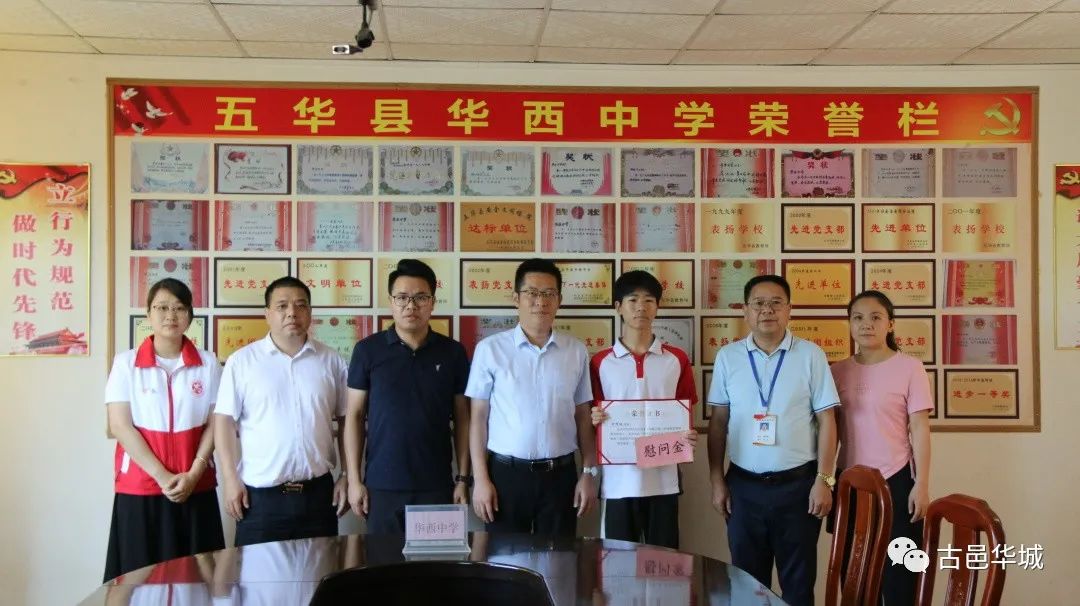为进一步弘扬中华民族优秀传统美德,宣扬见义勇为、乐于助人的崇高精神,在全镇形成互帮互助、团结友爱、无私奉献的良好精神文明风尚。5月29日下午,华城镇党委副书记、镇长吴恺平带队到五华中学、华西中学分别对钟振军同学、钟辉城同学勇救摔倒老人这一行为进行表彰,并送上荣誉证书和慰问金。