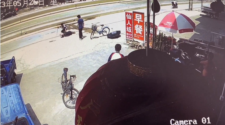 路边店铺的监控视频显示,5月26日14时许,正是上学时间,在华城大道马路边,一名步履蹒跚的老人突然被路面磕绊摔倒在地,迟迟未见爬起。在摔倒的一分多钟时间里,不少路人经过老人身旁,有学生也有送孩子上学的大人,他们有的稍稍减缓单车速度,但始终没有停下来上前搀扶。