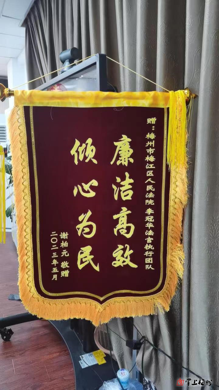 掌上梅州讯 近日,梅江区法院仅用25天执结一宗涉建设用地使用权转让合同纠纷案件。“我以为起码要三个月才能执行到位,没想到一个月不到就收到了执行款!”申请人谢叔在收到转让款的第二天,向梅江法院执行局送来“廉洁高效、倾心为民”的锦旗,对“梅江速度”赞不绝口。