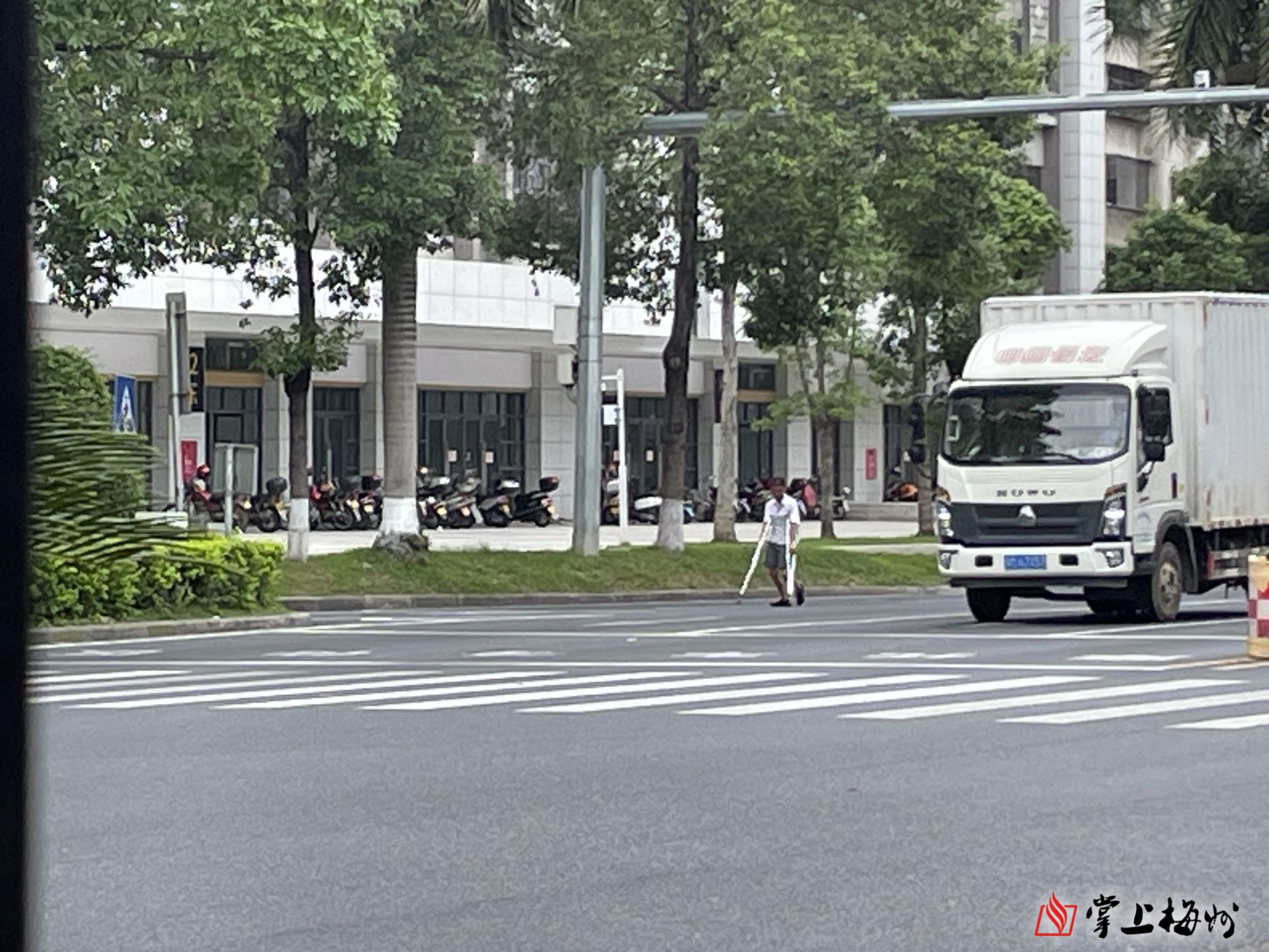 据报料人钟女士反映,日前上午11点半,她在途经梅江区梅江二路与嘉应中路交叉路口时,看到一名身穿白色短袖上衣、黑色短裤的男子步行穿行于车流之中。该男子走到正等待绿灯的车辆旁边,敲击车窗玻璃,疑似在乞讨。从钟女士提供的照片可看到,该男子还拄着一双拐杖,拿着写字板一类的东西。