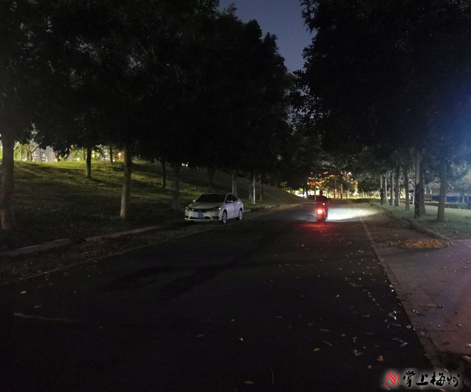 5日晚上8时,记者根据线索来到现场,发现梅州大剧院南向一侧有一条长约50米、宽约8米的道路,道路两侧安装有多个路灯,但均未亮起。透过路树的缝隙,梅州大剧院和附近街道的部分灯光能照射过来,有几位市民走在车道旁边的草坪上,依靠这些灯光辨别路况。“附近有多个小区,晚上有不少居民会在这一带散步。这条路上不时有车辆经过,照明不佳很容易发生碰撞。”附近住户袁伯表示,希望相关部门能尽快查明原因,为市民创造一个安全的夜间出行环境。
