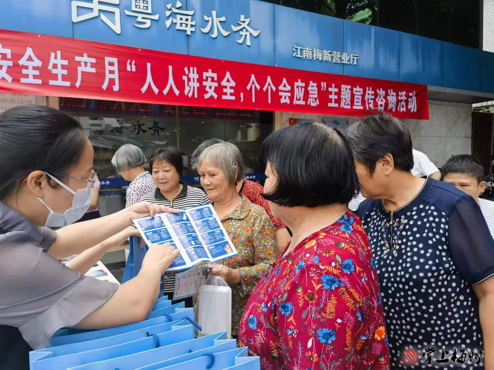 掌上梅州讯 今年6月是第22个全国“安全生产月”,主题为“人人讲安全、个个会应急”。6月16日,梅州粤海水务在梅新路营业厅举办安全生产月主题宣传咨询活动,提高市民安全意识和安全应急水平。