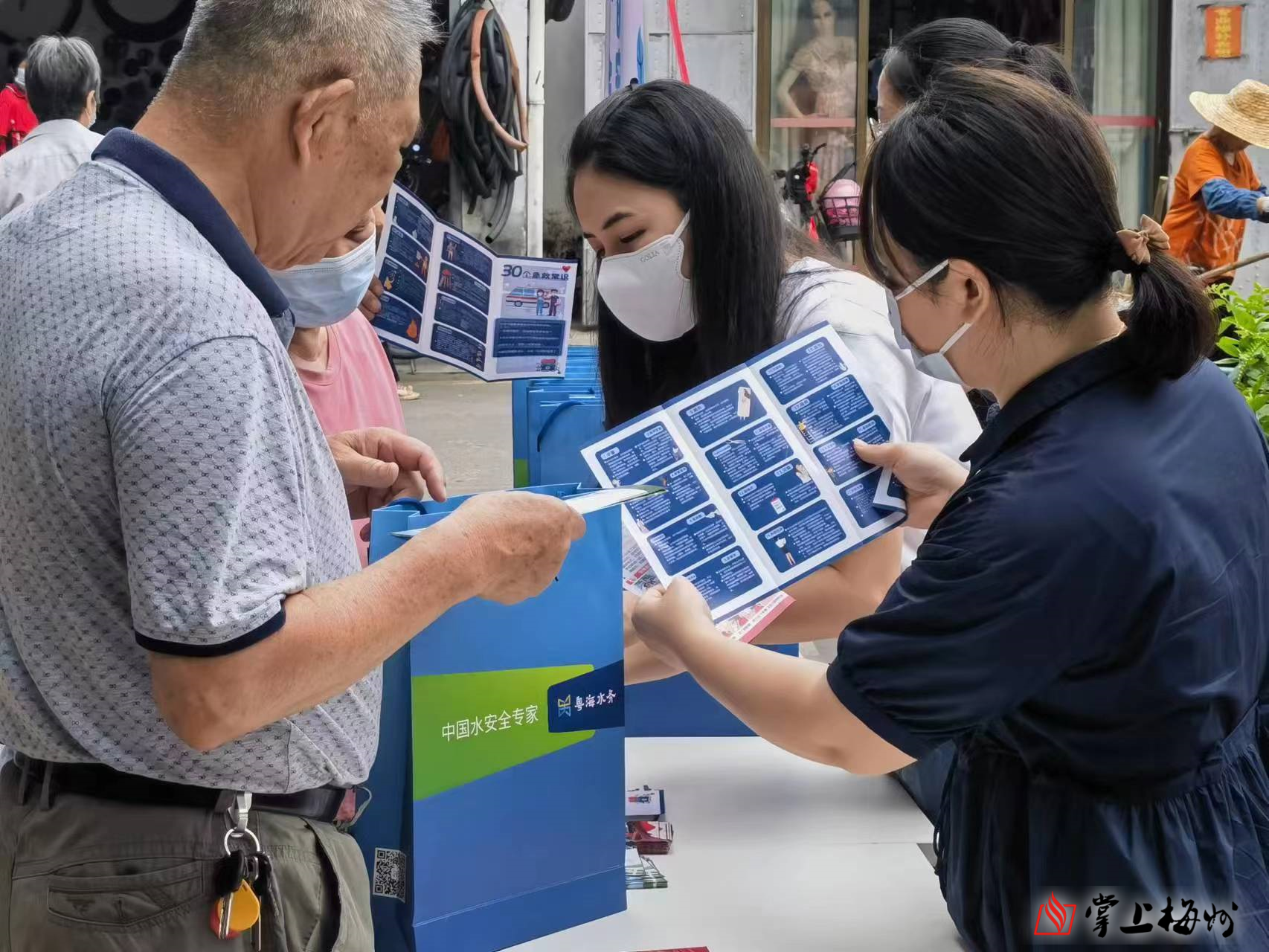 当天早上,梅州粤海水务工作人员在营业厅门口支起了摊位,摆放着内容丰富多样的宣传手册,吸引了一波又一波市民走近了解。“阿姨,现在天气热,中小学生又快放假了,到野外游泳的现象增多,容易发生溺水事故,要多给孩子们多宣传防溺水知识呢!”“夏天户外作业要注意防暑,防止引起热射病。”“烫伤是不能冰敷的,很多人都做错了,正确做法是用流动的水冲洗。”……在活动现场,粤海水务工作人员热情地向市民宣传急救常识、消防安全和安全生产等方面的内容,解答市民日常生活中遇到的疑惑,提高市民用水用电用气等方面安全意识。“我一天的工作分为两部分,分别是清晨和下午。下午两点就要到大街上作业了,自身要佩戴好头帽、长袖衣服来防晒,同时也要注意休息避免中暑。”活动现场,环卫工人黄姨翻阅宣传普及手册时说道。