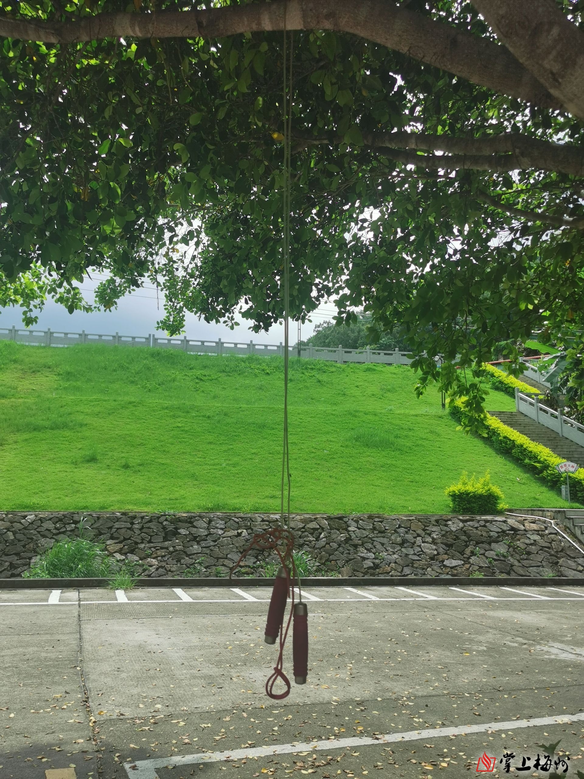 在百岁山郊野公园内也存在几处不和谐画面:靠近公园停车场能听到阵阵洪亮的歌声,原来是有几个人带着音响放声高歌;停车场内,有人将绿化植物当临时“寄放点”,把跳绳绳索挂在树枝上;还有流动摊贩将随身携带的背包、货物包装袋等放在草丛上。