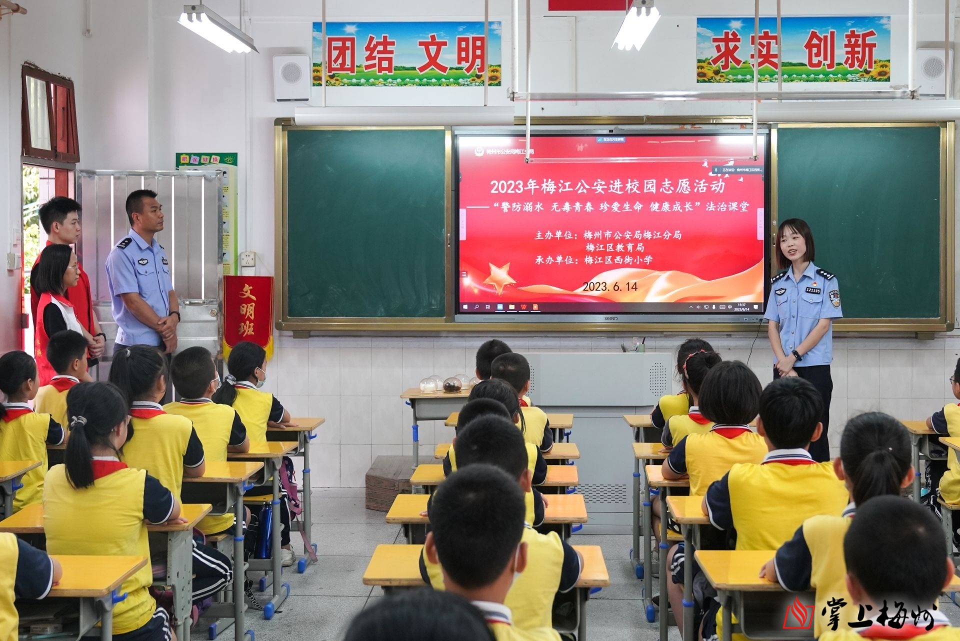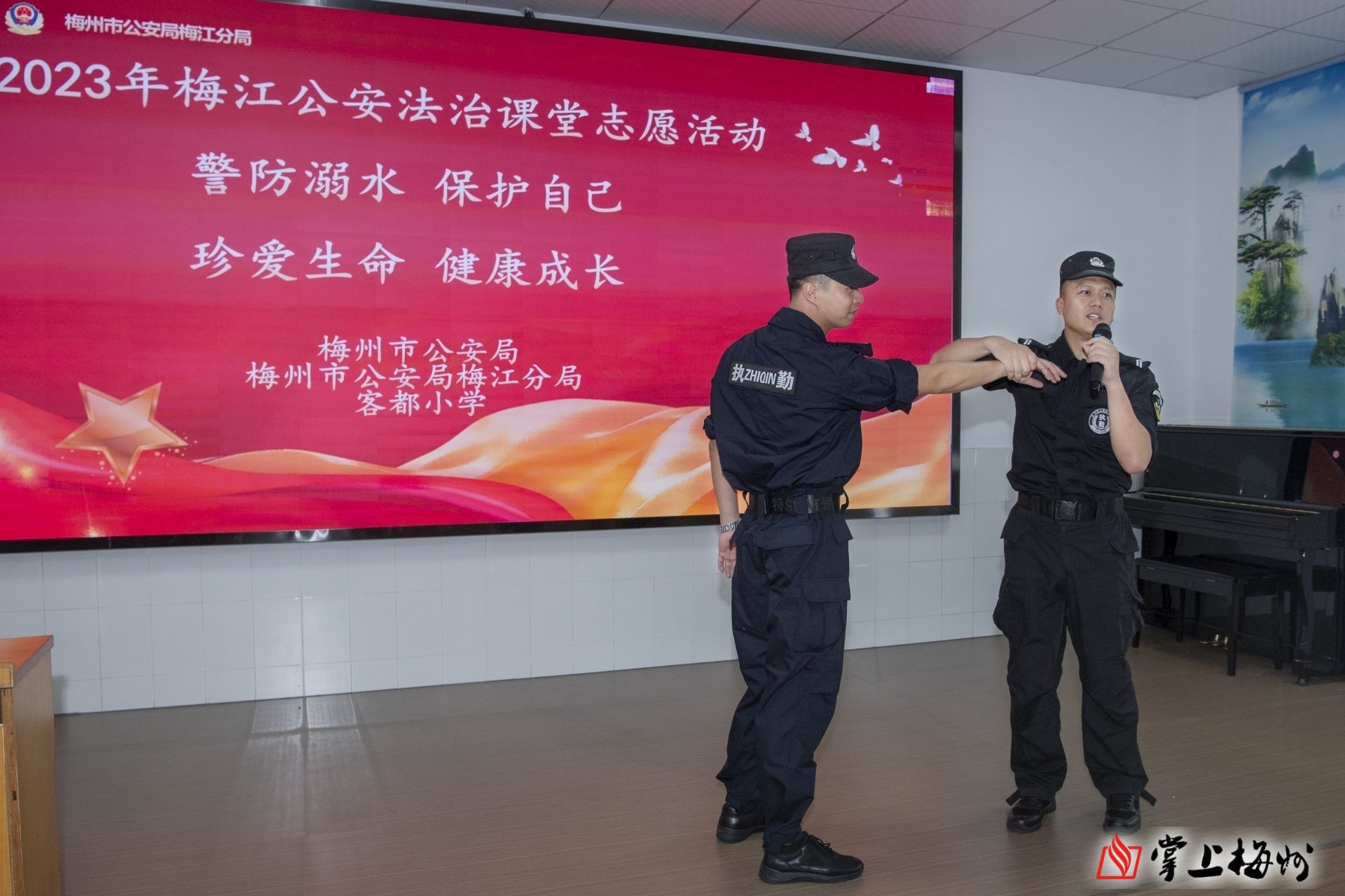 掌上梅州讯 “有哪位同学知道哪些地方容易发生溺水事故吗?”梅州市公安局梅江分局法治宣讲民警的话音刚落,教室里的学生们纷纷举起了手。这是日前发生在梅江区各校园内“警防溺水”法治课堂上的一幕。