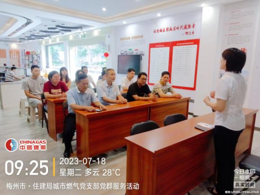 7月18日,梅州中燃还积极配合市住建局以及燃气服务中心等开展了“党群同心,服务同行”主题党日活动,讲解燃气安全知识及燃气查漏方法,普及《安全生产法》、《城镇燃气管理条例》等法律新规,介绍燃气基础设施,以及波纹管、报警器、自闭阀等安全系数更高的燃气配件,提倡广大燃气用户依法用气、科学用气、安全用气,优化家庭安全用气习惯,携手筑牢安全防线,保障人民群众生命财产安全。