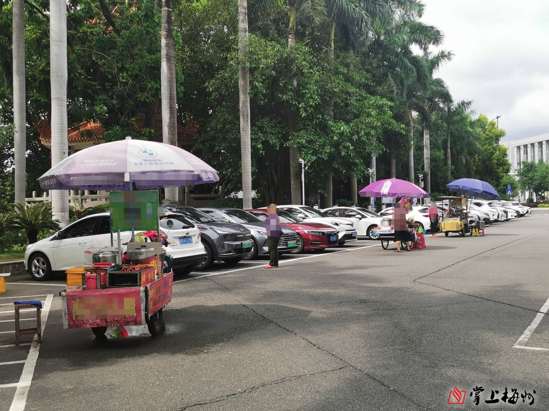在梅城剑英公园同样存在不文明现象。公园门口的公共停车场中,有个别流动摊贩堵住停车位入口,导致车辆无法停放。进入园区,一阵阵歌声此起彼伏,多位群众自带音响和话筒放声高歌,显得有些刺耳。还有一位老伯骑电动车载着音响,边四处溜达边大声外放音乐。此外,公园休闲长廊中有许多市民游客在乘凉聊天,其中部分人将双脚踩在长廊座位上,还有个别人直接躺在上面呼呼大睡。