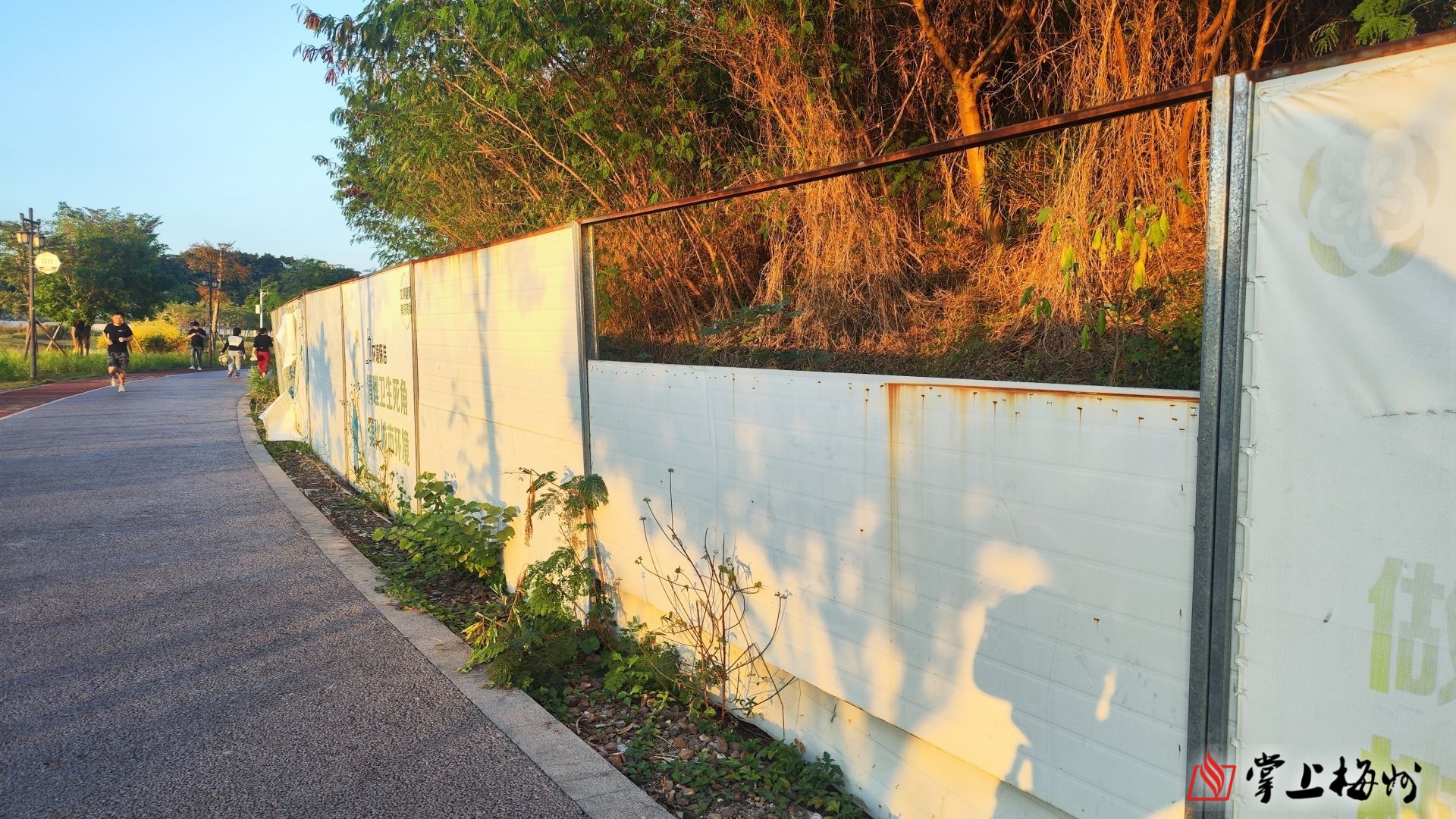 此外,记者发现在如意路旁的公园道路边上有条排水沟,但排水沟盖板出现了较大面积破损塌陷。该排水沟大约有四五十厘米深,里面长有杂草,二三十个盖板已经断裂,破损严重的只剩下了一层钢筋,容易发生人踩空掉落的情况。而剑英公园环湖步道一侧围挡上的公益广告牌也已经破烂不堪,部分广告布已经褪色变白,同时还存在围挡缺失和断裂的情况,不仅影响市容市貌,而且存在一定的安全隐患。