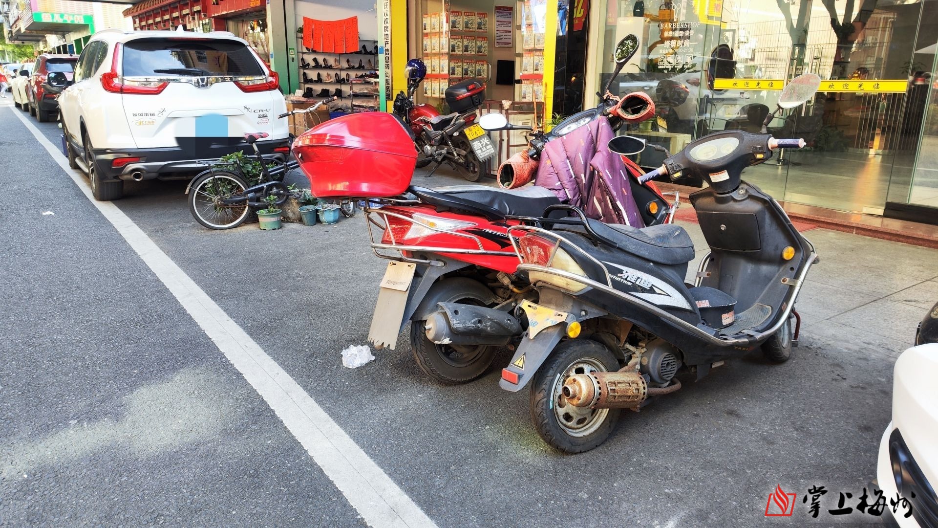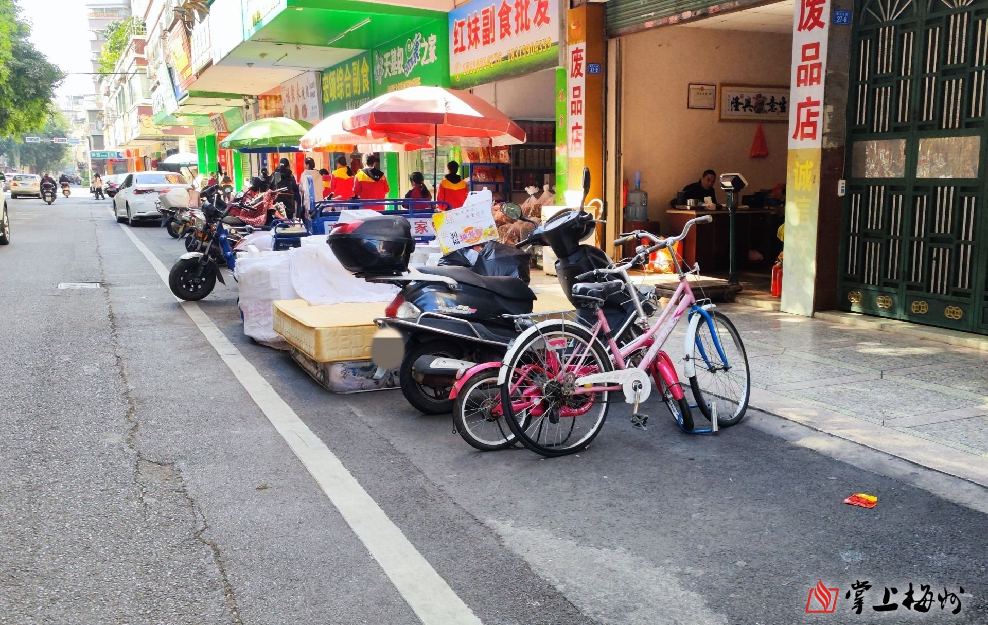 随后,记者来到了梅江区和友路看到,好些停车位上放置了饮水桶、水泥石墩、锥形桶等物品,甚至有人在店门口擅自加装了地锁霸占位置停车。而在梅县区梅荷路和楣杆北路,商家私自占用公共停车位的现象比较突出,用来占车位的“工具”更是五花八门,除了常见的自行车、摩托车外,连花盆、椅子、床垫、泡沫箱等都用上了,不仅造成了市民“有位不能停”的情况,也影响了市容市貌。