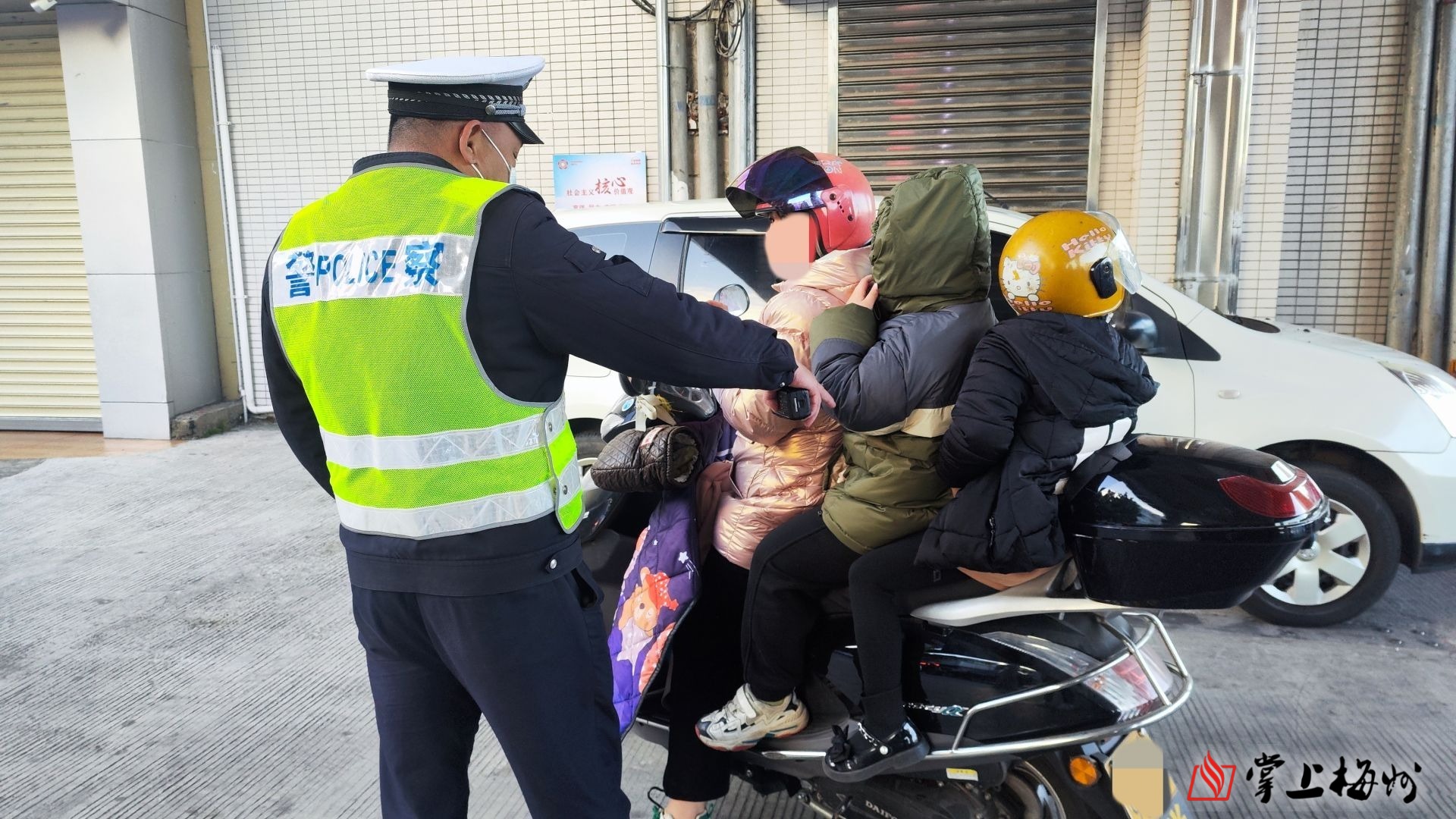 掌上梅州讯 近日,梅州市公安局交警支队直属大队针对校园周边存在的摩托车驾乘人员不戴头盔、超员超载等交通乱象开展专项整治行动,确保学生上下学出行安全,营造安全、有序的校园环境。