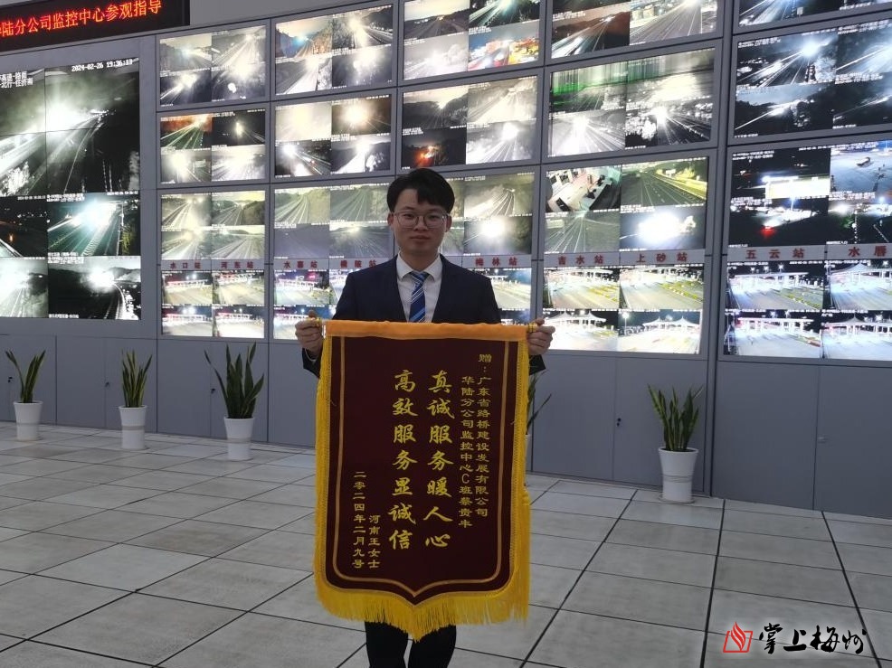掌上梅州讯 2月26日上午,一个来自河南省信阳市的邮件包裹送到了广东省交通集团所属兴华高速监控中心,打开包裹后,一面印有“真诚服务暖人心 高效服务显诚信”字样的锦旗映入大家眼帘。与此同时,锦旗赠送人王女士也通过电话再次表达了感谢。