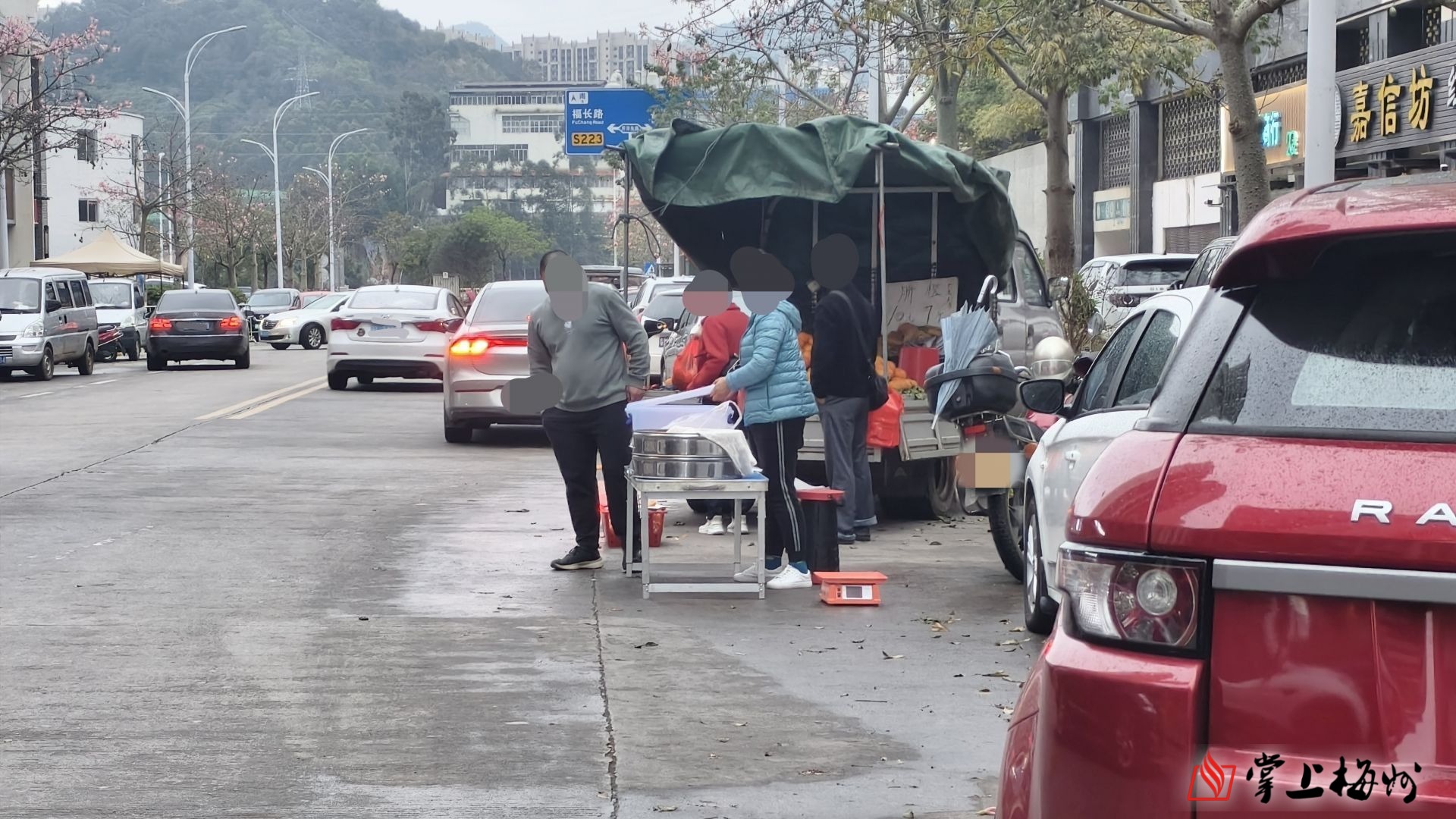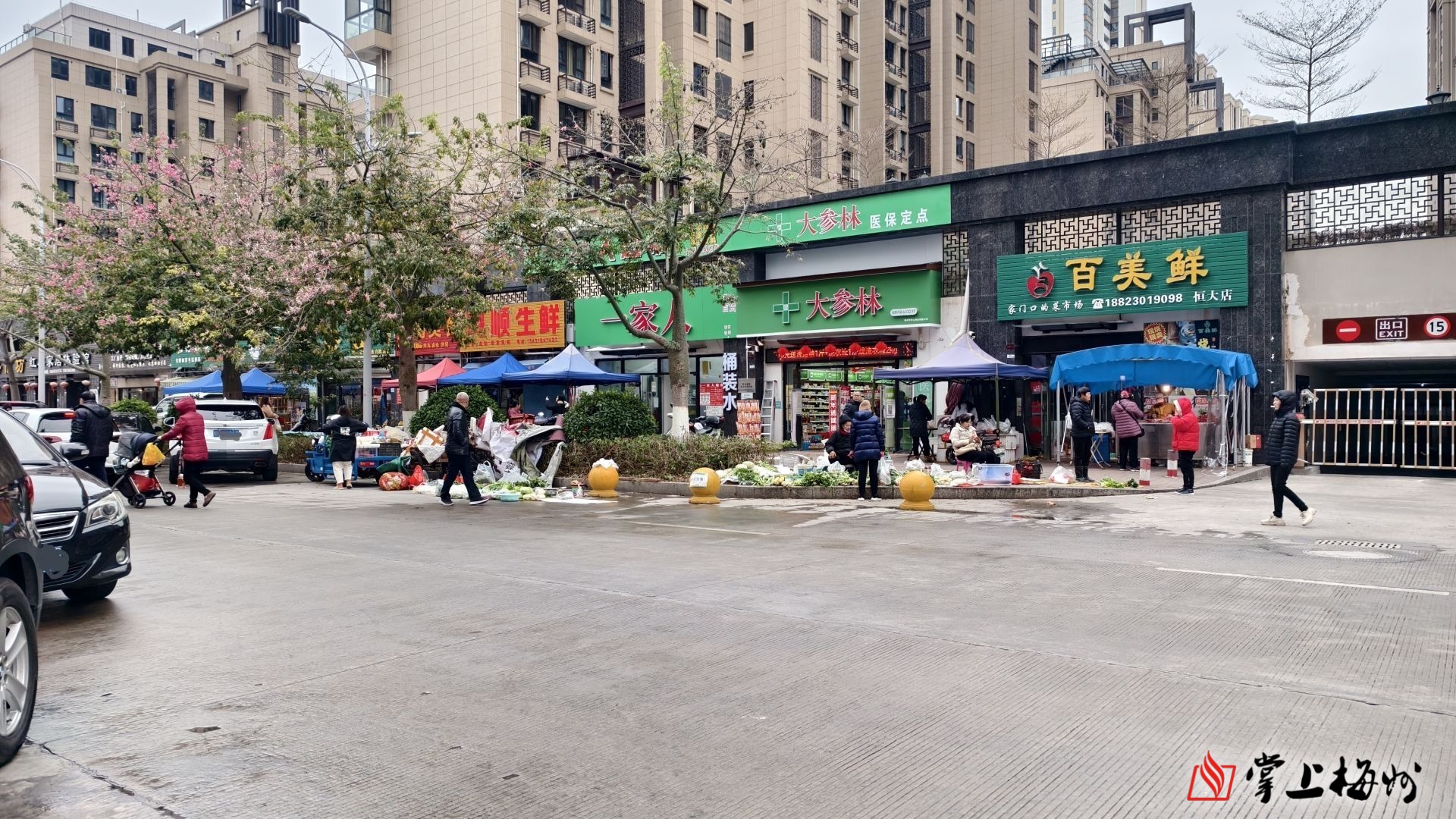 掌上梅州讯 最近,有市民向本报《民生一线》栏目反映,梅城芹洋半岛同福路周边占道经营现象突出,这也导致道路两旁不少车辆乱停放,不仅造成周围环境脏乱差,还影响周围小区住户正常出行。
