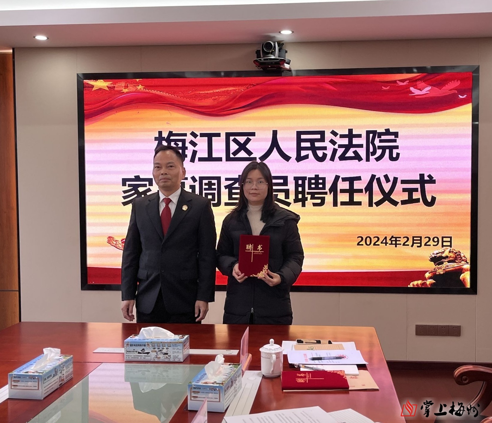 掌上梅州讯 “从今天起,你们就是梅江法院的家事调查员。希望你们能积极发挥自身特长和优势,更好地帮助法院化解家事矛盾纠纷。”近日,梅江区人民法院举行家事调查员聘任仪式,向来自梅江区各镇(街)的8名妇联干部颁发聘任证书。