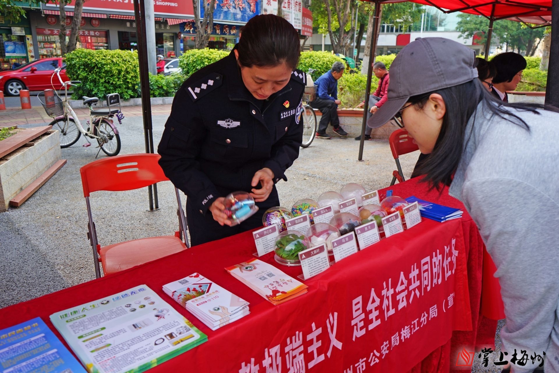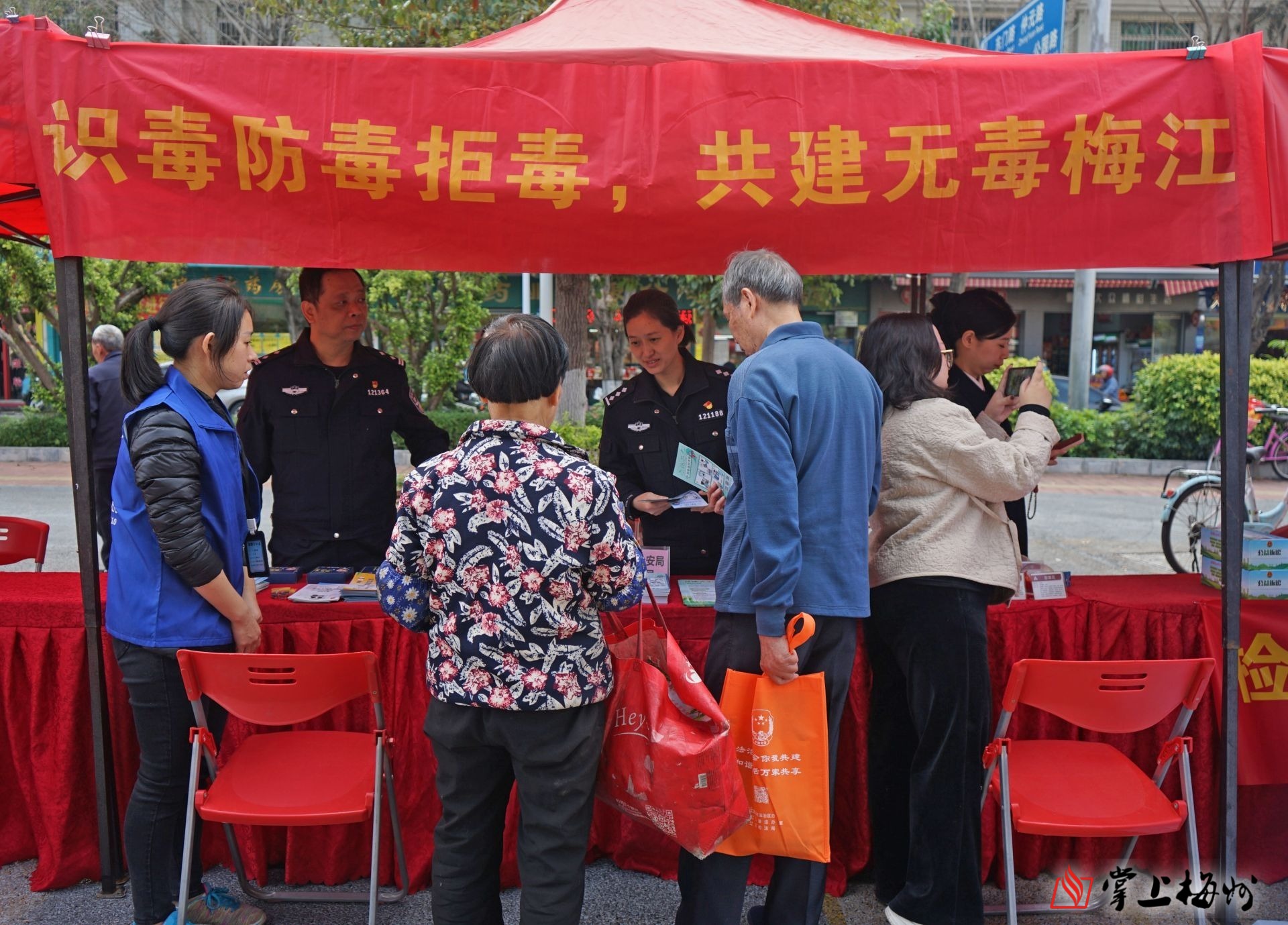 掌上梅州讯 3月5日上午,梅州市妇联、梅江区妇联联合市、区10余个单位在梅城江北文化公园广场开展以“维护‘她’权益 幸福千万家”为主题的“三八”妇女维权宣传活动。梅州市公安局梅江分局、梅江区禁毒办到活动现场开展禁毒法治宣传,为无毒梅江贡献“巾帼”力量。