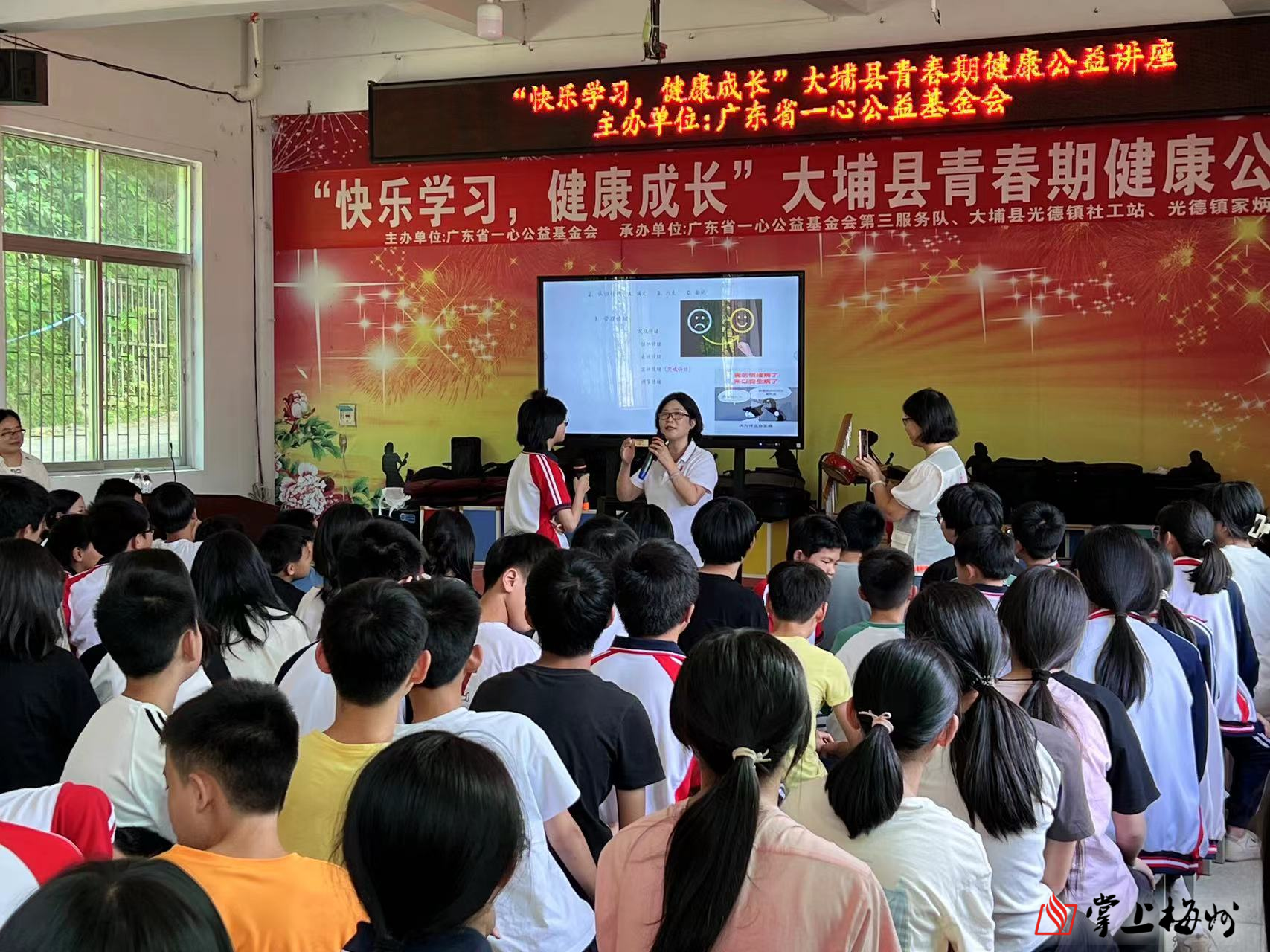 掌上梅州讯 为进一步普及青春期卫生健康知识,加强青少年儿童的心理健康教育,树立科学、文明、健康的生活理念,促进孩子身心健康,全面和谐发展。5月16日下午,大埔县光德镇社工站联合广东省一心公益基金会志愿者、镇妇联、团委到光德镇家炳实验学校开展“快乐学习 健康成长”大埔县青春期健康公益讲座。本次讲座由家庭教育高级指导师、儿科专家钟小兰主讲,参与学生达160多人。