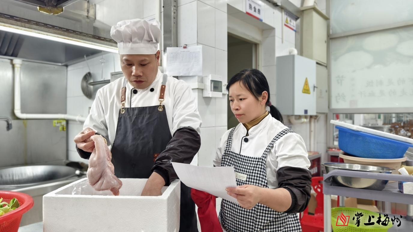 另一边的案板上传来节奏分明的咚咚声,在厨师黄利梅利落的刀工下,一段段葱姜被切得细如发丝,“这刀工是跟阿爸学的,他说切得细才能激出姜的辛香。”微信家族群里跳出母亲晒的鸡鸭猪羊各种过年食材照片,黄利梅只匆匆瞥一眼便继续投入工作。
