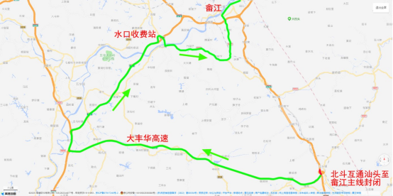 汕头往梅州方向行驶的车辆,从北斗互通绕行大丰华高速。