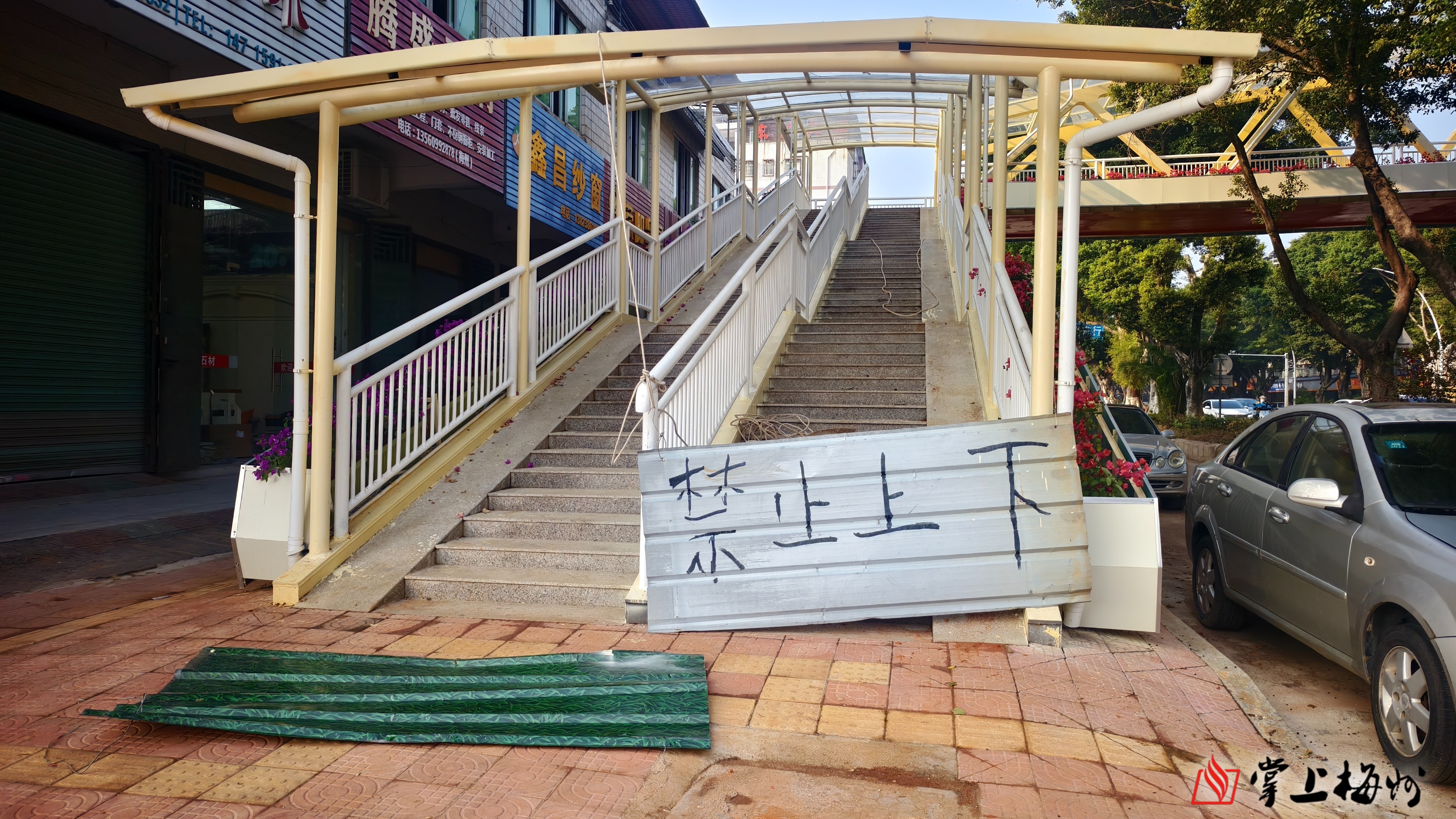 掌上梅州讯 “天桥都建好了,花草也种上了,为什么就是不让走呢?”12月22日,梅县区广梅中路锭子桥路段,看着近在咫尺却无法通行的人行天桥,住户廖女士的疑问道出了周边居民的共同心声。近日,多位市民向本报《民生一线》栏目反映,这座施工多年的天桥拆除围挡后仍未开通,让饱受过街难困扰的居民倍感焦急。