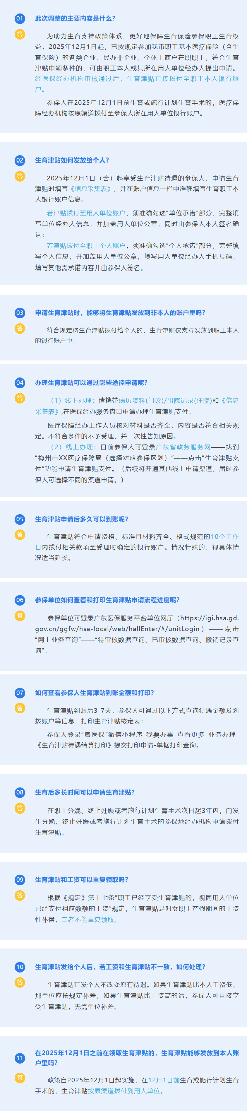 根据《关于进一步保障和改善民生着力解决群众急难愁盼的意见》《广东省职工生育保险规定》(粤府令第287号,以下简称《规定》)《广东省医疗保障局关于进一步加强生育医疗费用保障工作的通知》(粤医保函〔2025〕160号)等文件,我市出台了《关于优化我市企业生育津贴发放工作的通知》(梅市医保函〔2025〕155号),进一步调整我市生育保险生育津贴发放方式。