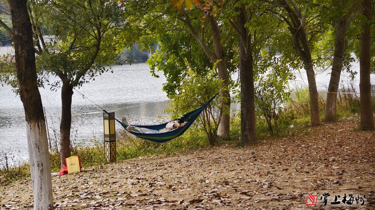 有市民将摇篮直接系在公园的树木枝干上,在摇篮里大幅度摇荡,树枝被拉扯得剧烈晃动,树皮出现明显磨损痕迹。