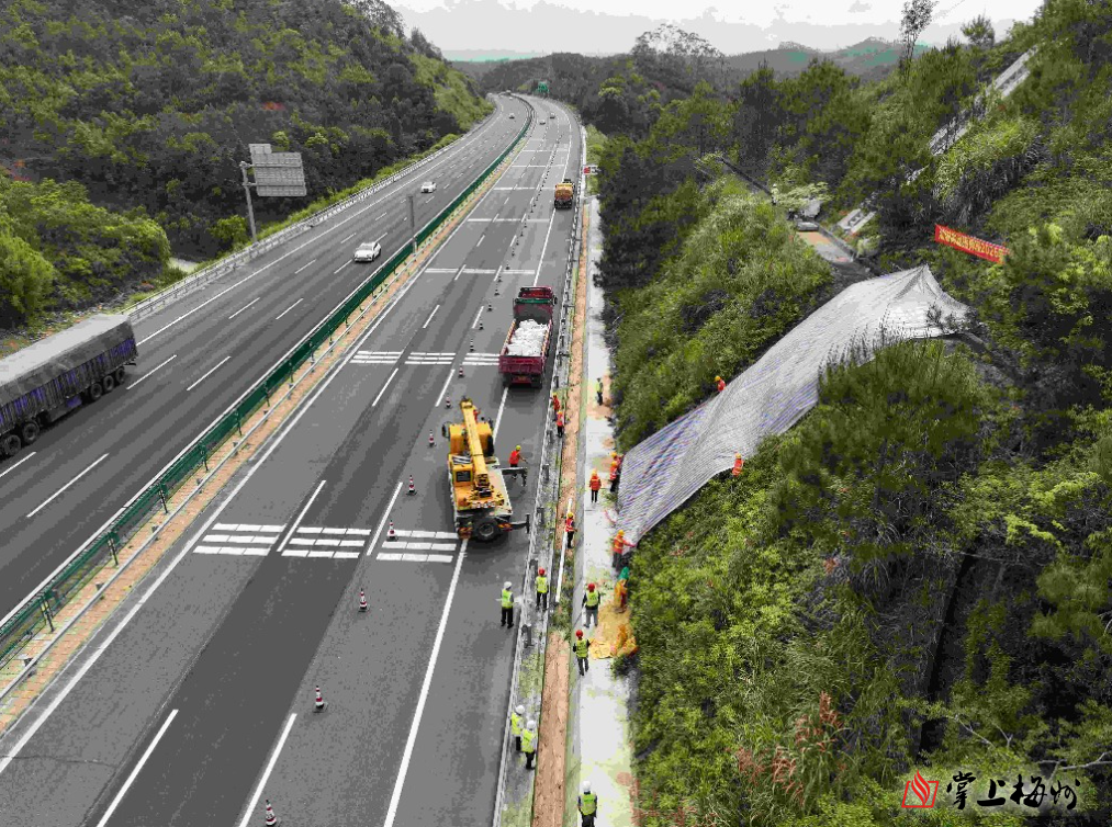 掌上梅州讯 “报告!揭西方向K1738+300m处边坡发生浅层滑塌,土石已侵入行车道,请立即支援!”4月9日,广东交通集团所属揭博高速监控中心接到紧急报告,一场贴近实战的边坡滑塌应急处置演练随即打响。