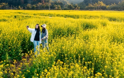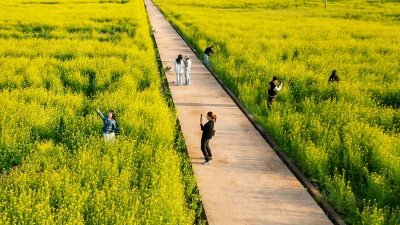 金色花海上线!梅县区白渡镇悦来村百亩油菜花竞相绽放,这片金色太治愈