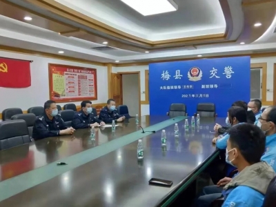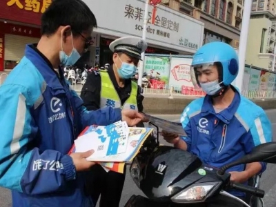 梅县区交警联合外卖企业开展交通违法行为教育劝导活动