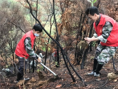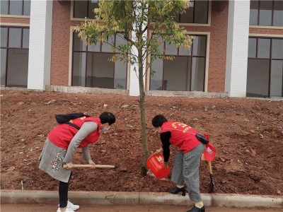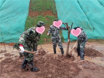 他们挥锹培土,为梅县区这片土地换上“绿装”