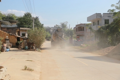 村道开通仅一个来月却尘土飞扬,村民群众苦不堪言。