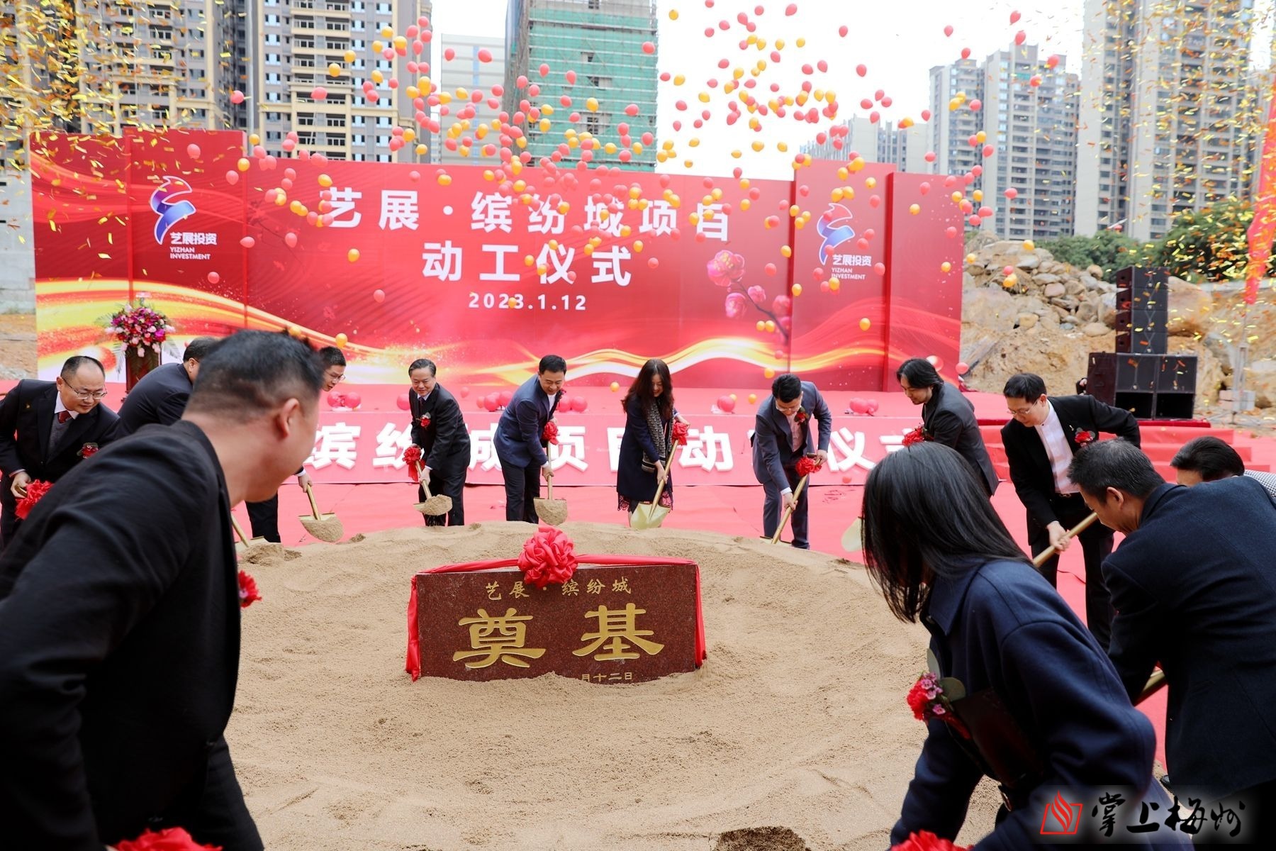 掌上梅州讯 1月12日上午,梅县区在剑英大道举行艺展·缤纷城项目动工仪式。梅县区委书记温助民,区委副书记、区长王锋,区领导李瑞金、赖启忠、张贤亮、吕瑜泉、赖宇坚、张炳荣、林作鹏出席仪式。