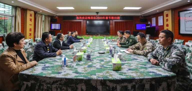 温助民、王锋向驻梅部队官兵们通报了梅县区经济社会发展情况。他们表示,2022年梅县区始终坚持以习近平新时代中国特色社会主义思想为指导,全面贯彻党的二十大精神,深入贯彻落实中央经济工作会议、中央农村工作会议以及省委十三届二次全会精神,认真落实省委黄坤明书记来梅调研指示要求,按照市委工作要求,统筹发展和安全, 千方百计把资源要素集中到“打粮食”项目上,全力加快构建铜箔、装备制造、智能家电“2+1”现代产业体系,开辟梅县发展新领域、新赛道,努力让梅县苏区百姓过上好日子。2023年,区委区政府将一以贯之落实好拥军优属、从优待军等各项政策,全力保障国防和军队建设、战备执勤等方面实际需求,共同巩固和发展军政军民同呼吸、共命运、心连心的大好局面。同时,希望广大驻梅部队官兵在梅县这片根植红色基因的热土上,继续保家卫国、守护安宁,共同营造安全、和谐、稳定的良好社会环境,为谱写中国式现代化梅县发展新篇章作出新的贡献。