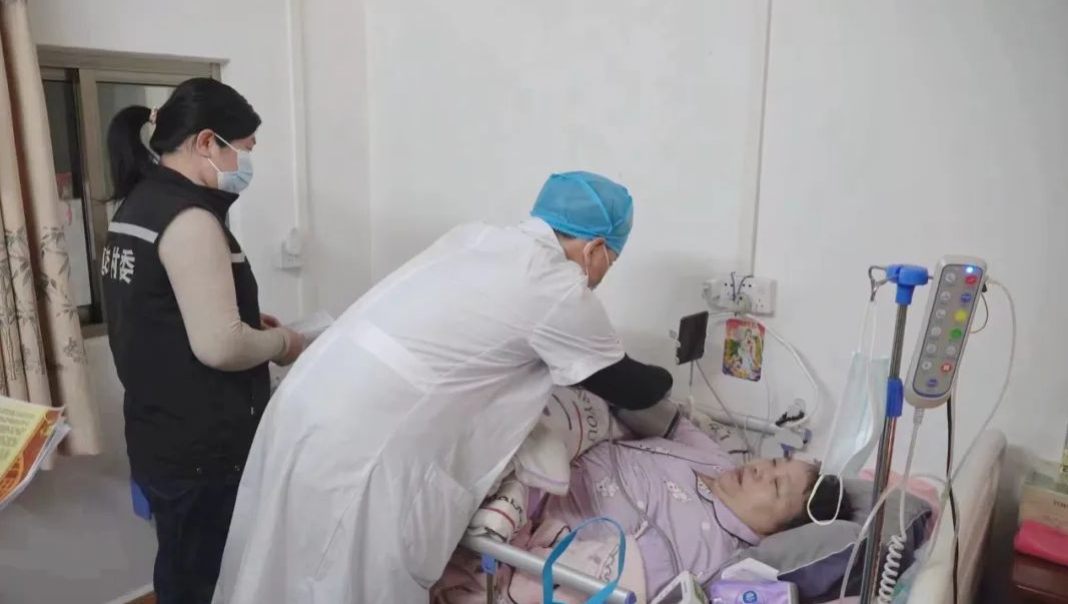 一大早,松口镇镇郊村党群服务中心的工作人员便陪同村医丘赞,来到当地村民李雪峰家走访了解其母亲近期身体健康状况,为躺在床上的老人进行了一系列检查服务,据了解,该老人去年因患脑梗一直卧床养病,在前期摸排中,镇郊村将她纳入重点关注人群,每两天一次上门巡诊。