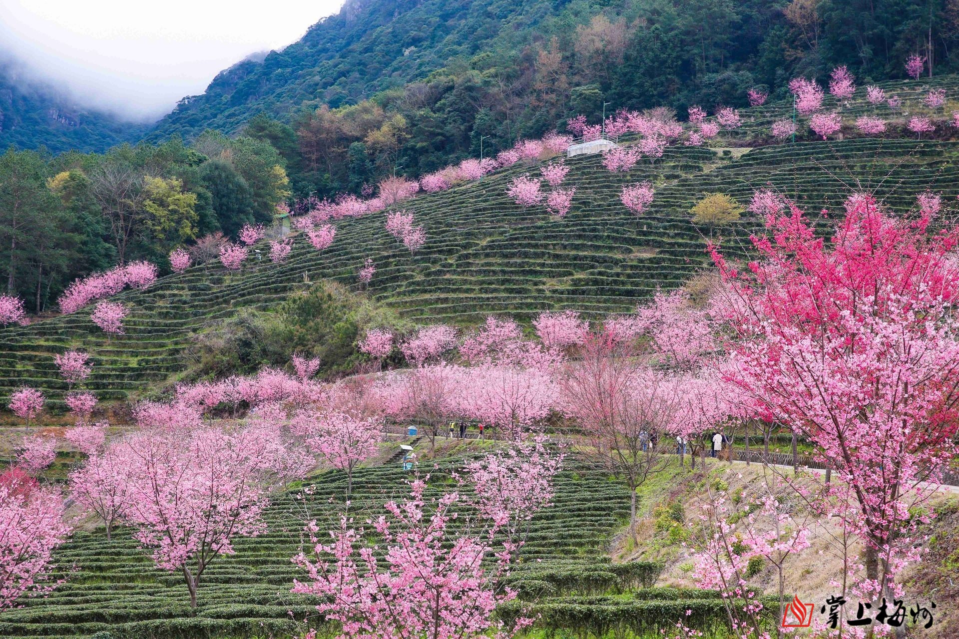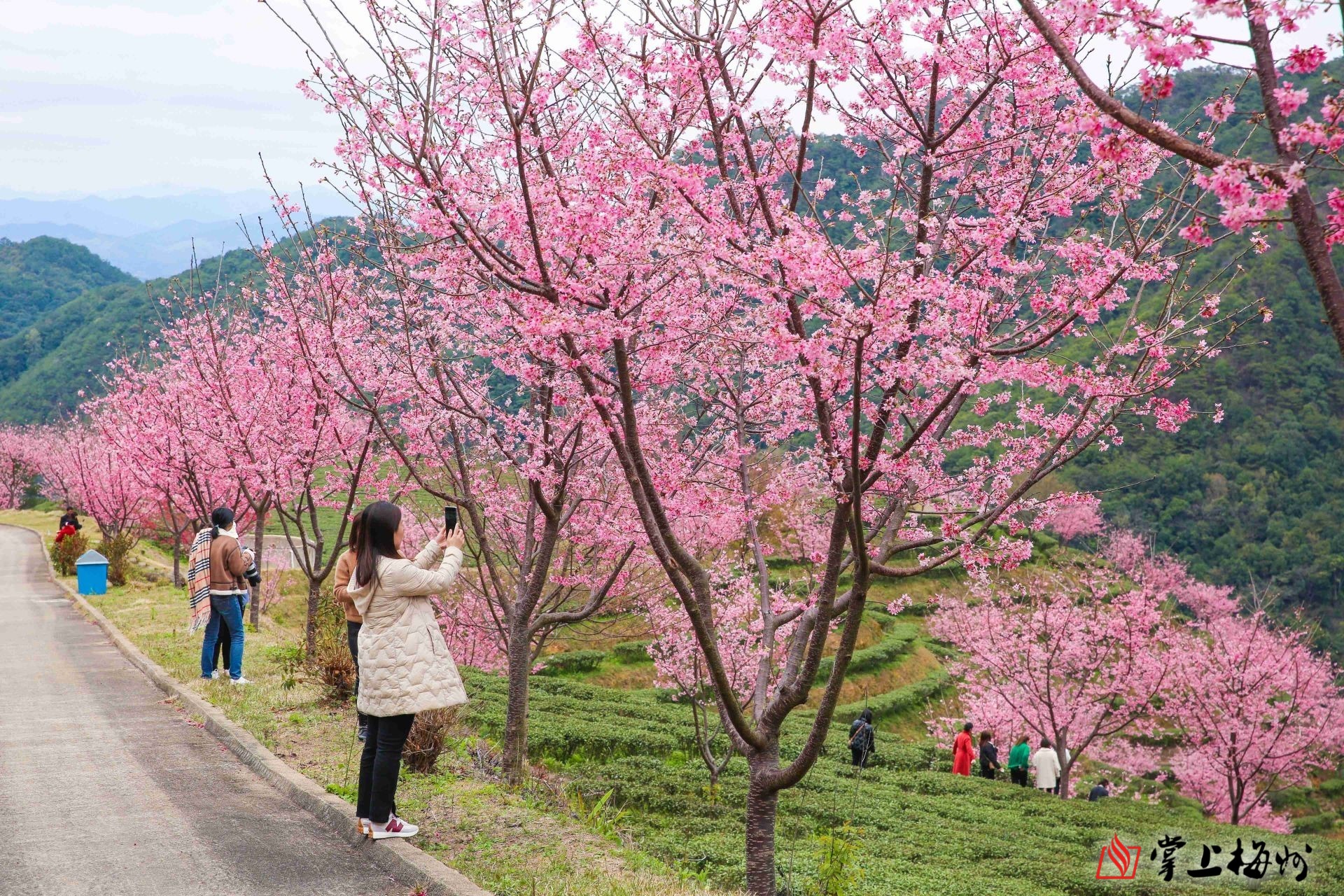 据了解,阴那山樱花园位于阴那山五指峰下华银茶业基地内,赏花面积约1000亩以上,是华银茶业近年新增的一个农业旅游观光项目,主要种植品种有红粉佳人樱、台湾牡丹樱、香水樱和福建山樱。“樱花园在2月14日正式开园,花期将持续至3月初。期间,我们也将推出很多客家美食,欢迎广大游客来这边赏樱花、看茶田、品美食。”阴那山樱花园负责人曾振华告诉记者。