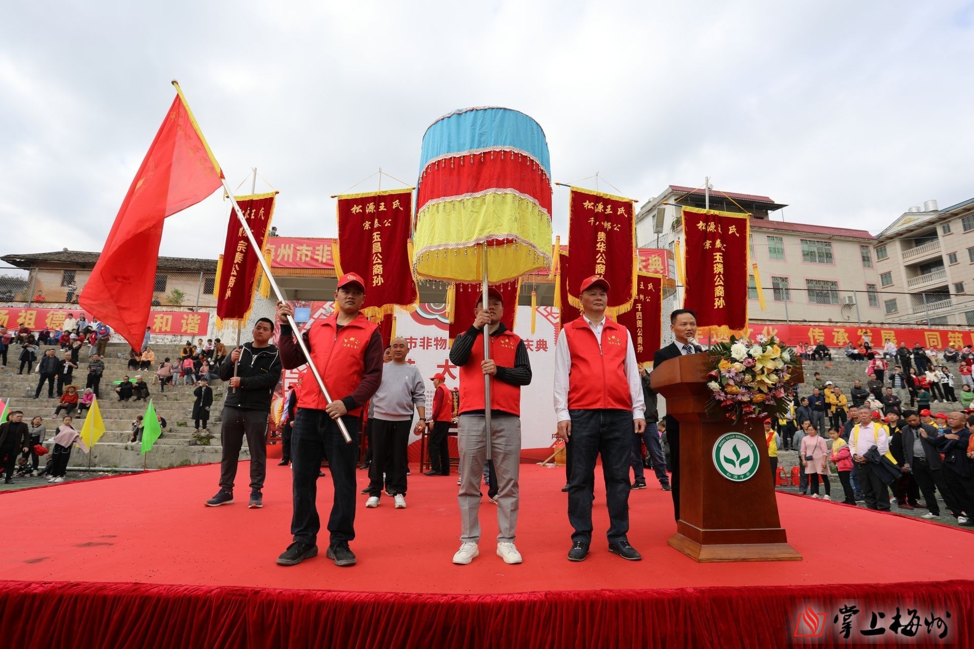 掌上梅州讯 2月18日上午,梅县区松源镇在松源中学足球场举行了一场盛大的非遗民俗活动——“挂大牌”。