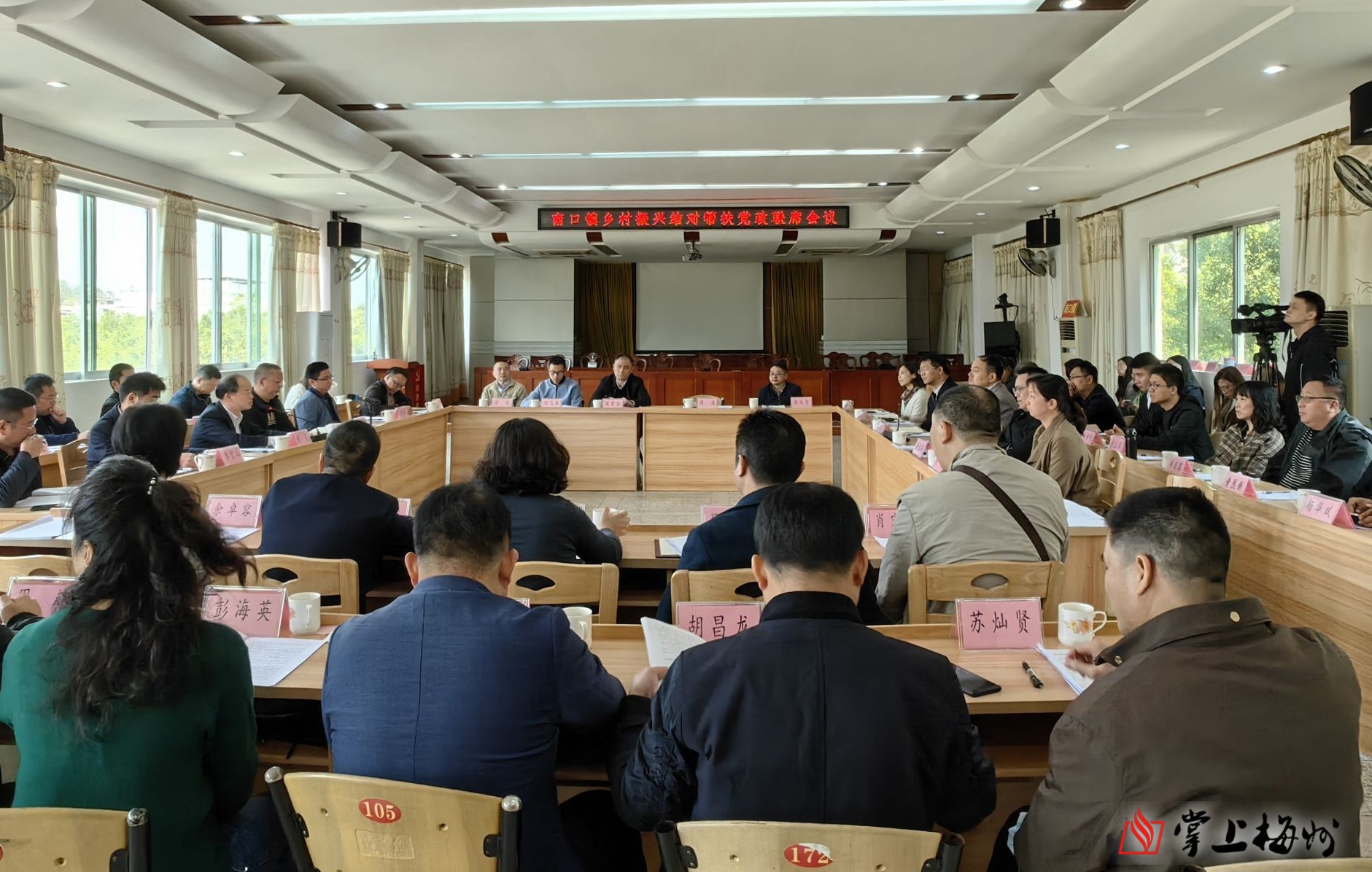 掌上梅州讯 日前,广州市荔湾区白鹤洞街道办事处牵头联合荔湾区文广旅体局、南源街道办事处、站前街道办事处等单位在梅县区南口镇政府召开乡村振兴党政联席会议,荔湾区组团帮扶单位领导与南口镇政府党政领导班子成员、驻镇帮镇扶村工作队等参加会议,会议还邀请了荔湾区发改局及组团帮扶单位属地企业代表参加。