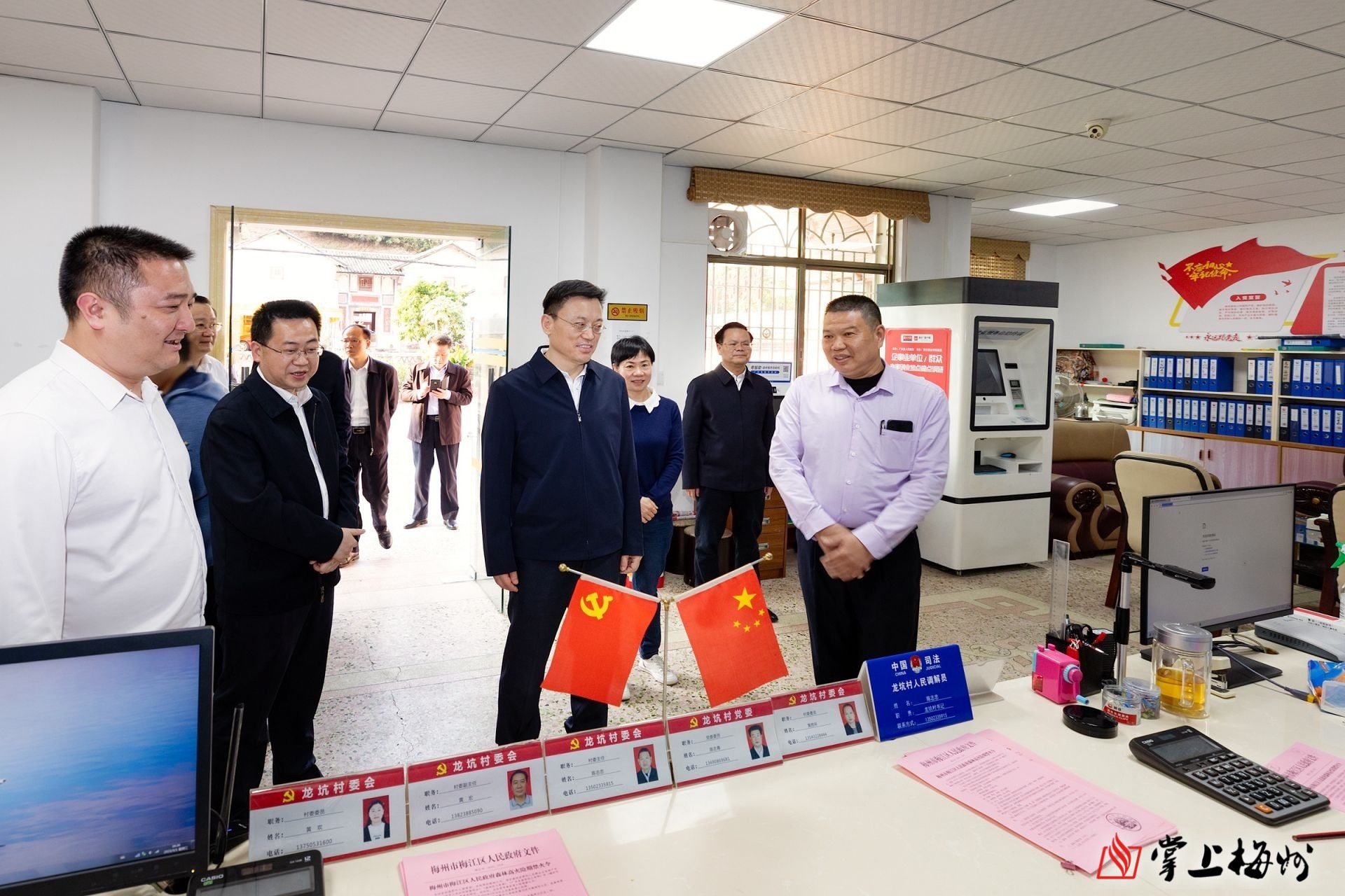 马正勇在梅江区西阳镇龙坑村党群服务中心调研并听取森林防火宣传和巡护工作情况介绍。