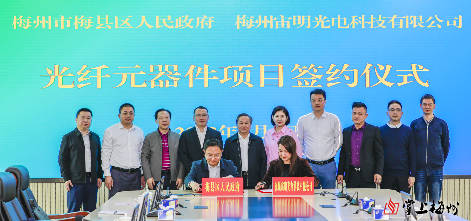 从3月2日下午梅州宙明光电科技有限公司董事长郑睿博率队来梅县区考察开始,梅县区迅速成立了以区委书记温助民为组长的招商工作项目组,提供“一对一”最精准、最优质、最高效的服务,努力创造亲商、爱商、富商的营商环境,短时间内实现了从洽谈到签约的招商“加速度”!