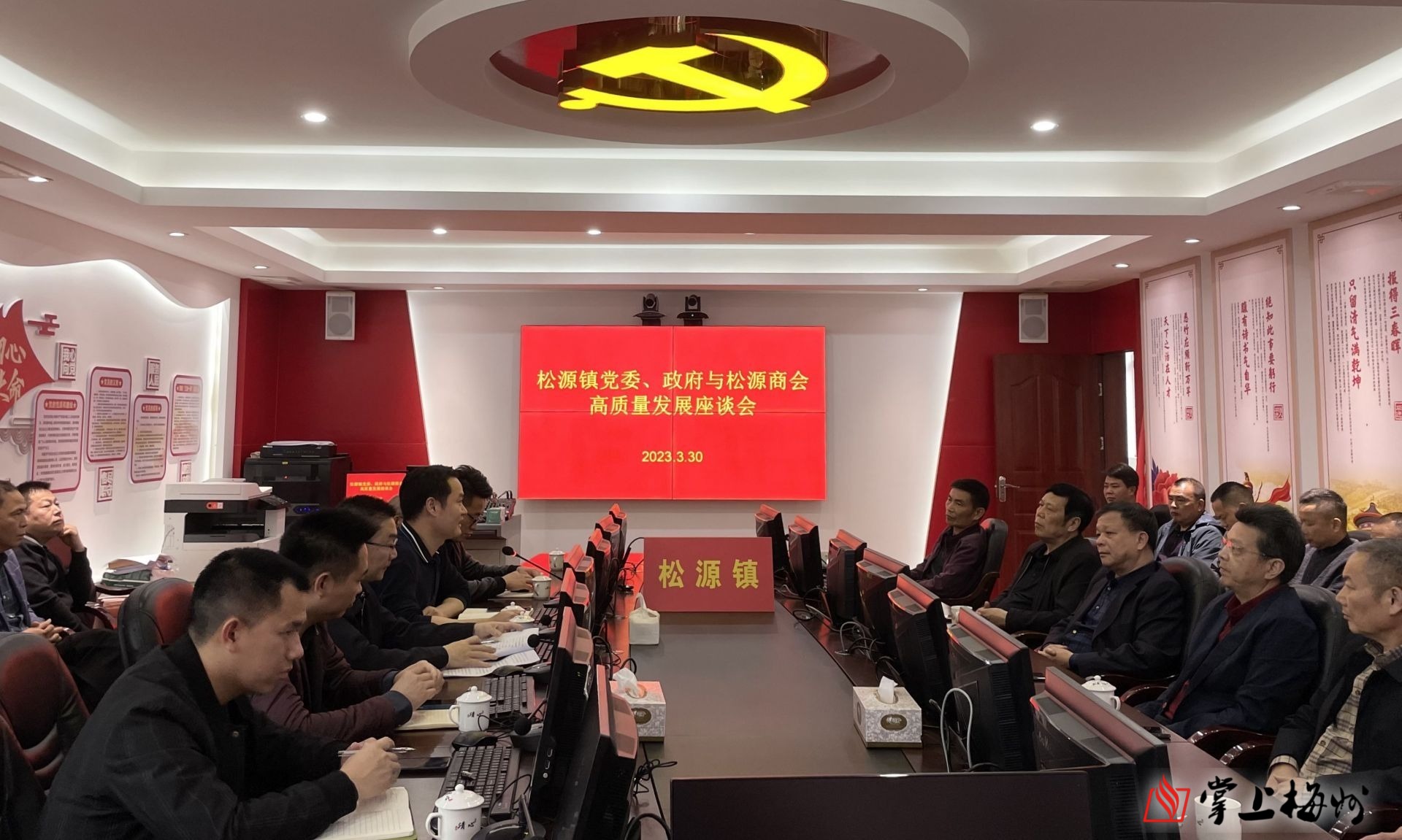 为深化“红色商会”建设,助力高质量发展,3月30日,梅州市松源商会组织会员回到家乡梅县区松源镇开展红色主题教育和参加高质量发展座谈会。商会永远荣誉会长温华光,顾问何小卫、王玉良,会长王梅基,执行会长王胜均,监事长王标能,轮值会长何忠发,常务副会长兼秘书长王勇,常务副会长刘清厚等40多人参加活动。