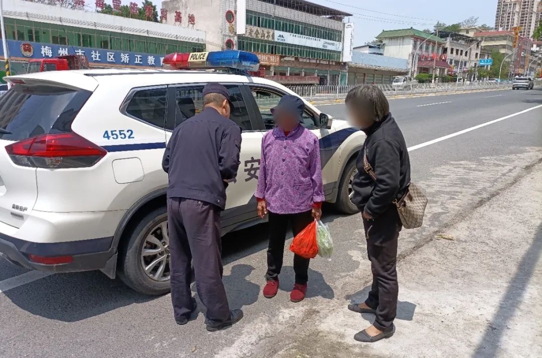 事情要从今天上午说起。4月7日11时,梅县区城东派出所接群众报警称石下村宝宝幼儿园门口发现一迷路老人。接报后,值班民警叶桂平带着辅警立即赶往石下村,看到幼儿园门口坐着一名老人,很是无助。经检查,老人身上无外伤,但是其身上无手机、无身份证,也无法说清姓名、住址及家属情况,周围的村民也无人认识她,一时间无法确定身份。
