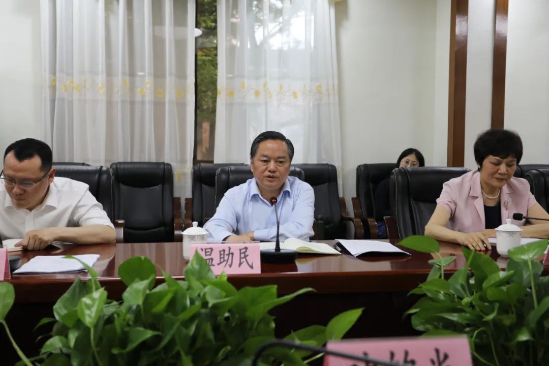 在雁洋镇,温助民听谋划、议对策,详细了解该镇“百千万工程”工作推进情况,并就如何深入推进“百千万工程”与该镇党政班子进行座谈交流。