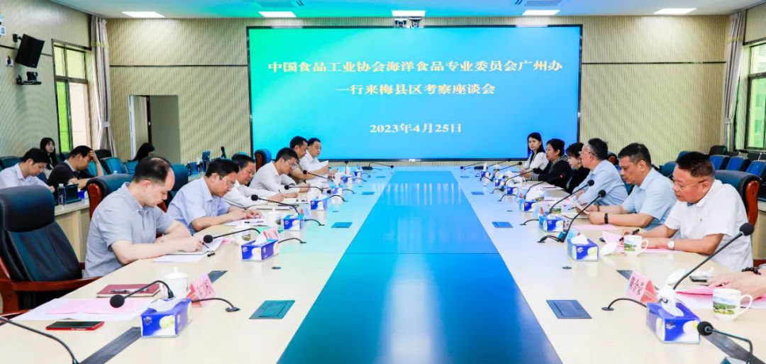 4月25日,中国食品工业协会海洋食品专业委员会广州联络办考察团一行到梅县区参观考察,就如何深入贯彻落实习近平总书记视察广东重要讲话重要指示精神,加强陆海统筹、山海互济,打造食品工业产业集群,与梅县区进行深入交流。梅县区委书记温助民陪同考察并座谈,梅县区委副书记、区长王锋主持座谈会。