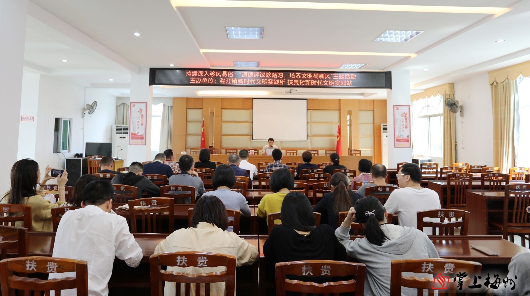 掌上梅州讯 4月27日下午,一场主题为“道德评议除陋习培育文明树新风”的道德评议会在梅县区程江镇扶贵村新时代文明实践站举行。