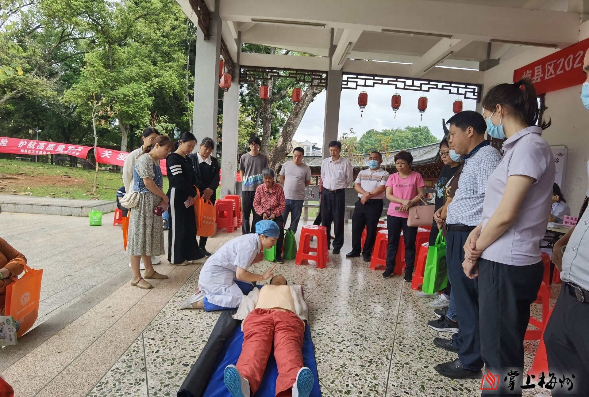 此外,梅县区红十字会还在现场开展了以“关爱生命、救在身边”为主题的宣传活动,医护人员进行了心肺复苏等急救措施现场教学演示,普及应急救护基本常识和技能,提高群众的自救互救能力。