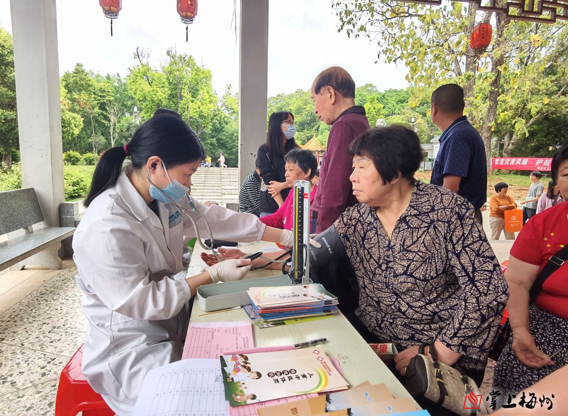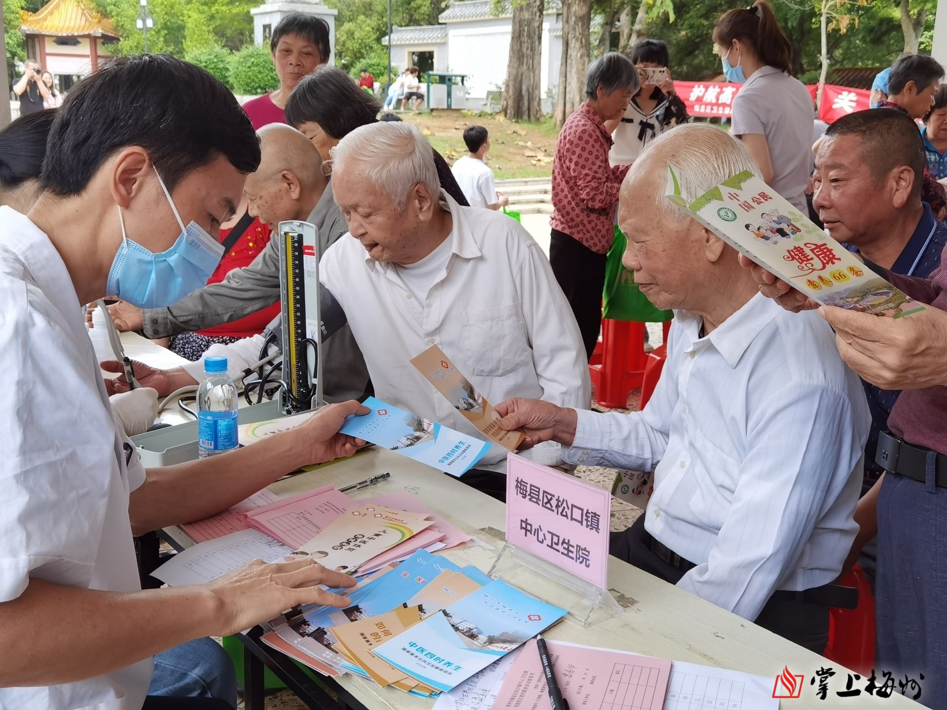 与此同时,来自梅县区中医医院、区妇幼保健院、松口镇中心卫生院的医护人员还在松口镇中山公园为当地群众开展义诊,提供免费测血糖和血压等服务。同时,工作人员通过发放宣传资料、现场咨询等多种形式,向群众宣传地贫防控、家庭医生签约、健康素养66条等相关政策和健康知识。