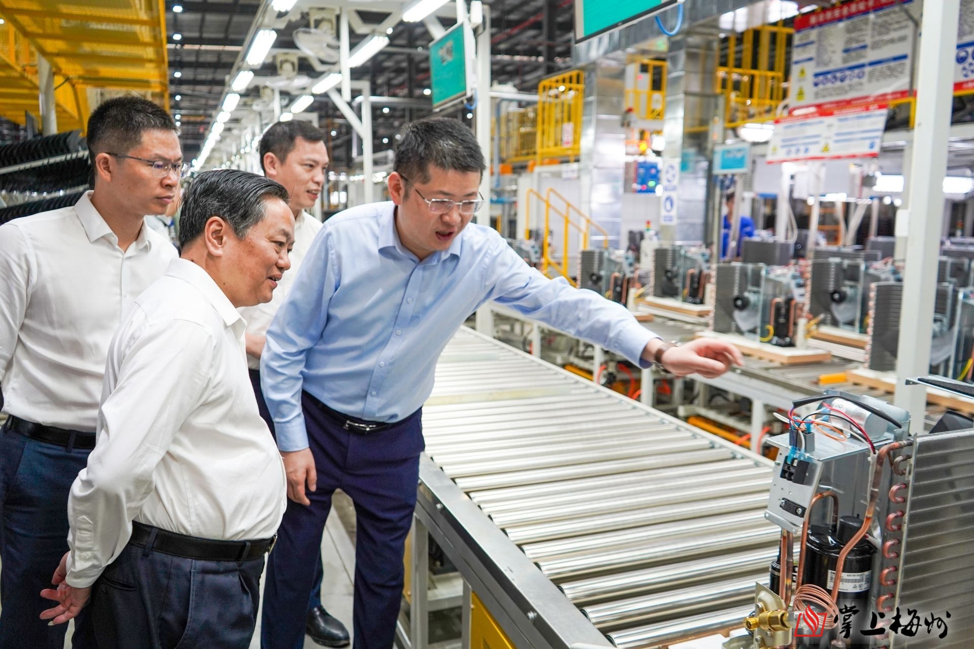 在津晶集团柳州智能家电产业园组装基地,梅县区考察团认真听取了空调等智能家电研发、生产、销售以及市场前景介绍,详细了解智能家电上下游集聚发展、自动化生产情况,希望津晶集团配强力量、加快进度,力促梅县智能家电产业园8月份动工建设。
