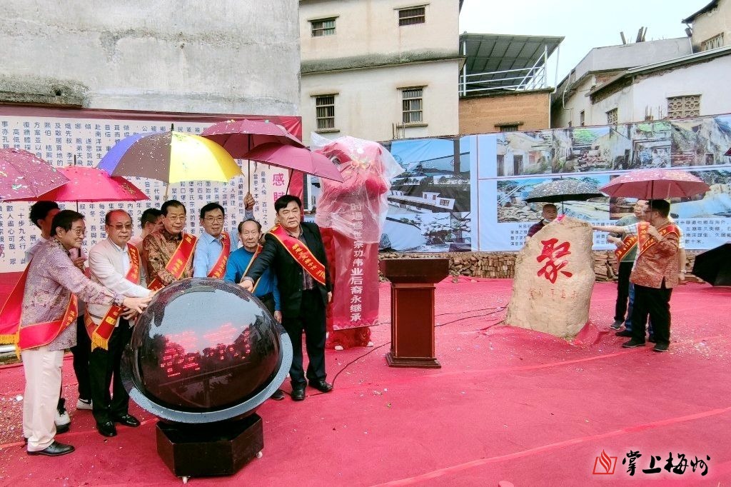 掌上梅州讯 11日上午,松口镇聚喜楼重建奠基仪式举行,印尼客属联谊总会总主席、印尼华侨叶氏财团董事长叶联礼,梅州市荣誉市民、印尼梅州会馆辅导主席李世镰率领的梅州苏区融湾入海商务考察团一行,市县侨联相关负责人等参加仪式。
