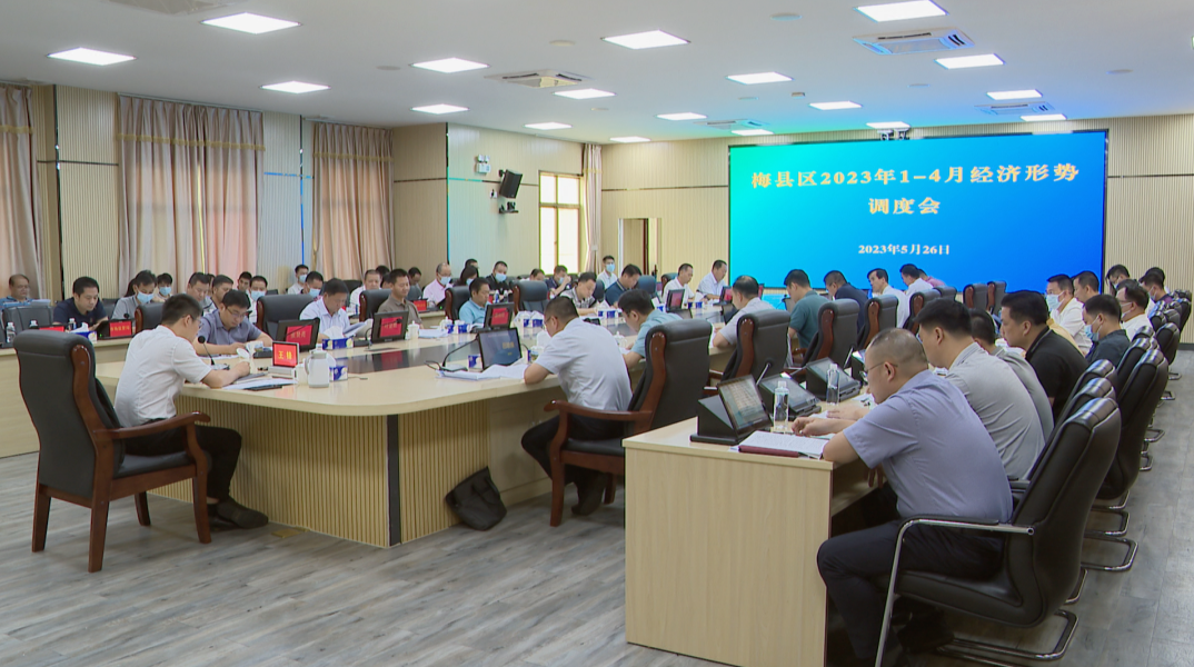 5月26日上午,梅县区委副书记、区长王锋主持召开梅县区2023年1-4月经济形势调度会,深入学习贯彻党的二十大精神和习近平总书记视察广东重要讲话、重要指示精神,认真落实省市工作部署,盘点总结梅县区1-4月经济运行情况,分析研判面临的经济形势,安排部署当前重点工作任务,动员全区上下进一步认清形势、坚定信心,紧盯目标、真抓实干,确保上半年实现“双过半”,为全年经济发展赢得更大主动。