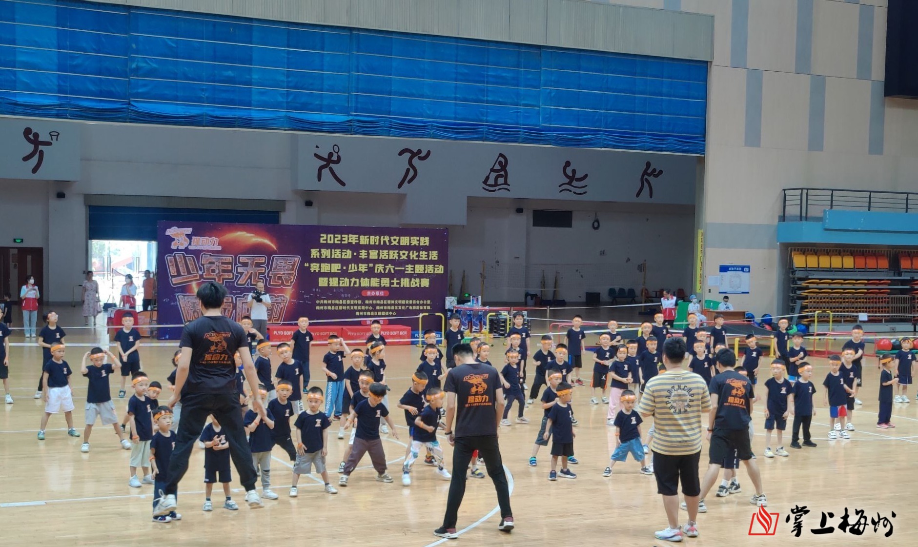 掌上梅州讯 日前,梅县区在梅县区文体中心开展2023年新时代文明实践系列活动“奔跑吧少年”庆六一主题活动暨猩动力体能勇士挑战赛。