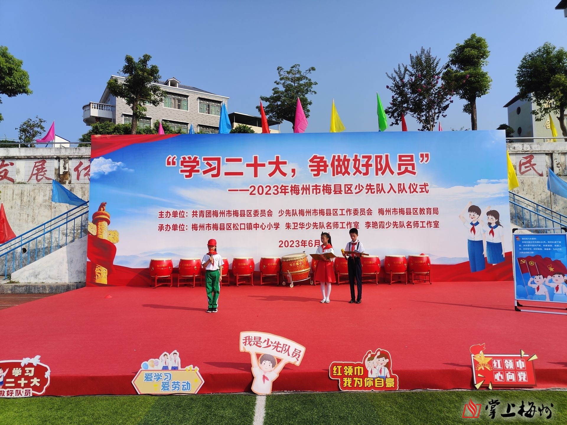 掌上梅州讯 6月2日上午,梅县区团委、梅县区教育局、梅县区少工委联合在松口镇中心小学举行“学习二十大 争做好队员”2023年梅县区少先队入队仪式,相关单位负责人、各中小学辅导员代表、松口镇小师生共380余人参加了活动。