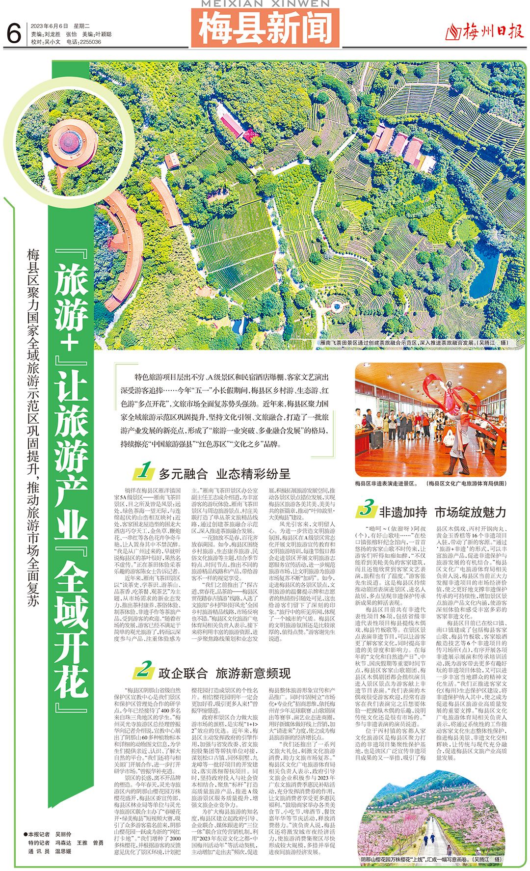 “我们之前推出了‘探古道、赏春花、品茶韵——梅县区赏花踏春古镇游’线路,入选了文旅部‘乡村四时好风光’全国乡村旅游精品线路,市场反响也不错。”梅县区文化旅游广电体育局相关负责人表示,接下来将利用丰富的旅游资源,进一步聚焦路线策划和业态发展,积极拓展旅游发展空间,推动各景区景点错位发展,实现梅县区旅游各美其美、美美与共的新篇章,推动“叶帅故里·大美梅县”建设。